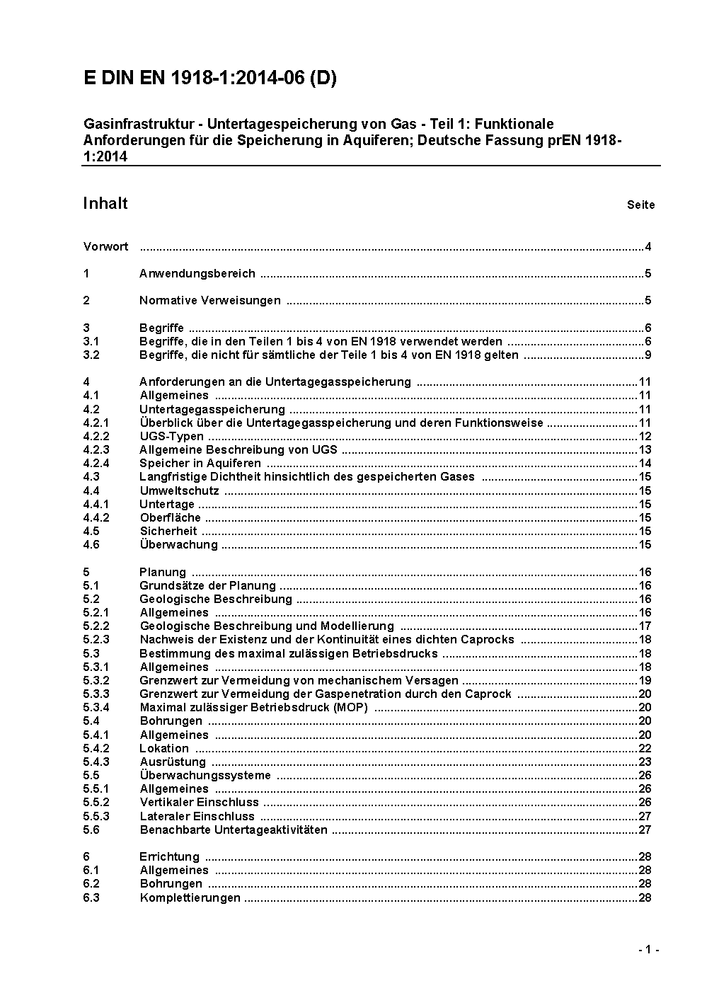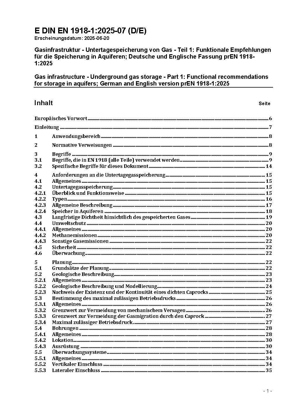 Gasinfrastruktur - Untertagespeicherung von Gas - Teil 1: Funktionale Empfehlungen für die Speicherung in Aquiferen; Deutsche Fassung EN 1918-1:2016 / Achtung: Diese Norm ist Bestandteil des DVGW Regelwerks.