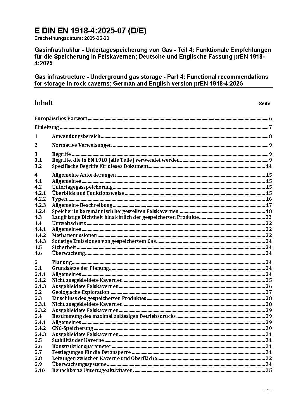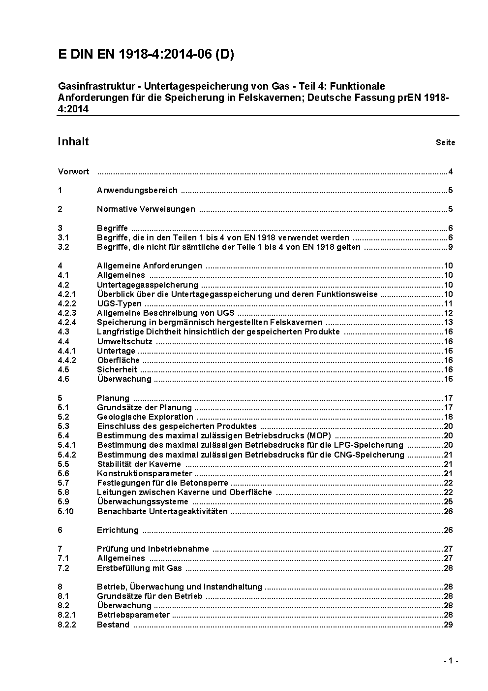 Gasinfrastruktur - Untertagespeicherung von Gas - Teil 4: Funktionale Empfehlungen für die Speicherung in Felskavernen; Deutsche Fassung EN 1918-4:2016 / Achtung: Diese Norm ist Bestandteil des DVGW Regelwerks.