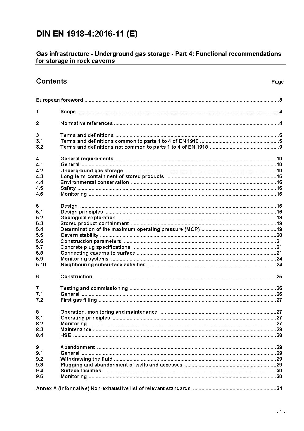 Gas infrastructure - Underground gas storage - Part 4: Functional recommendations for storage in rock caverns; German version EN 1918-4:2016.