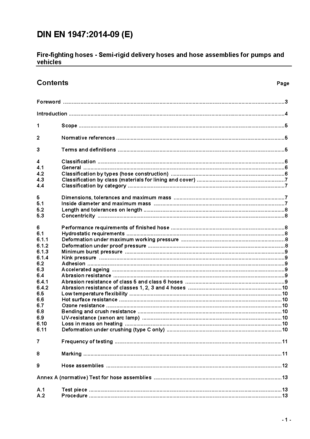 Fire-fighting hoses - Semi-rigid delivery hoses and hose assemblies for pumps and vehicles; German version EN 1947:2002 + A1:2007