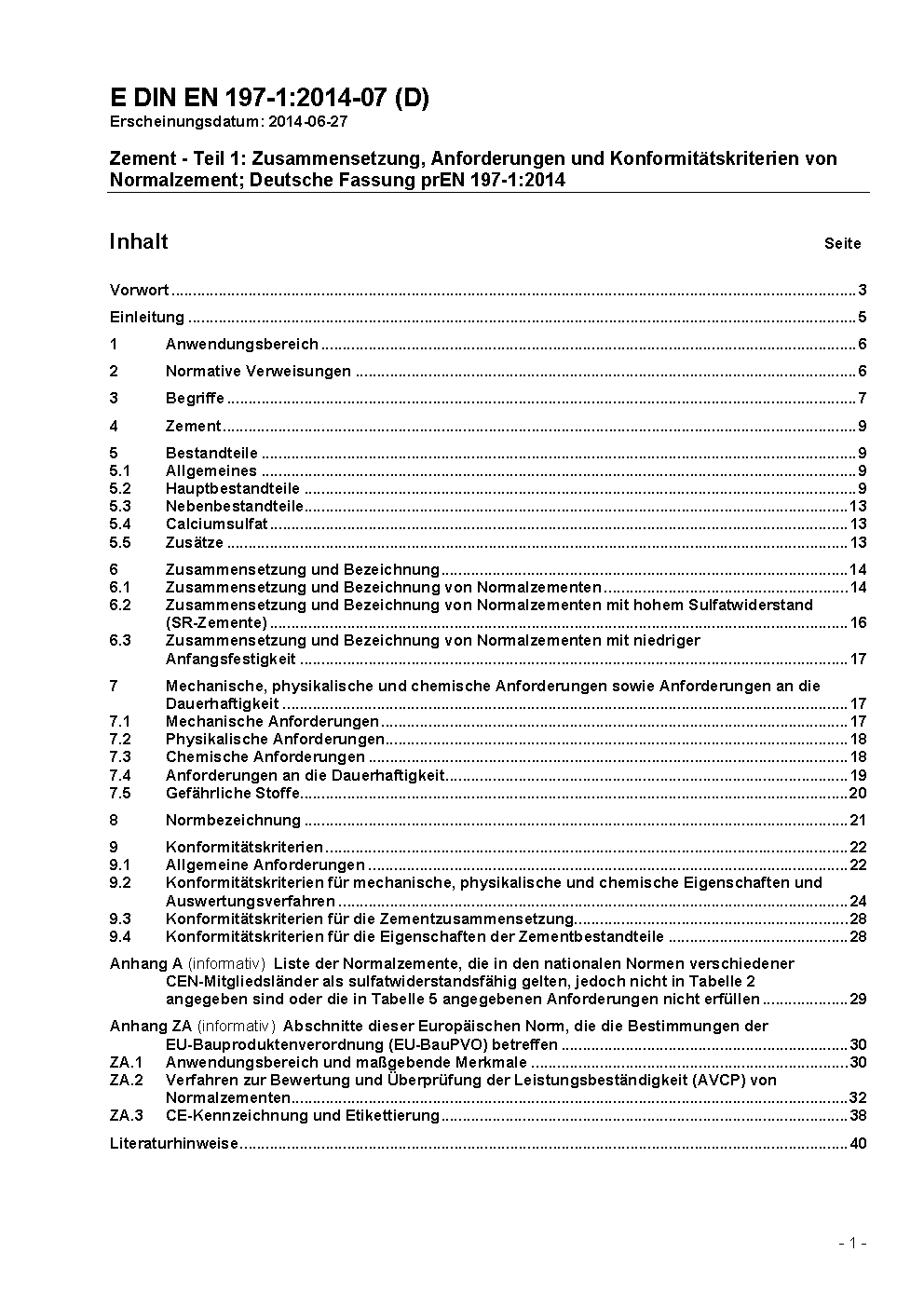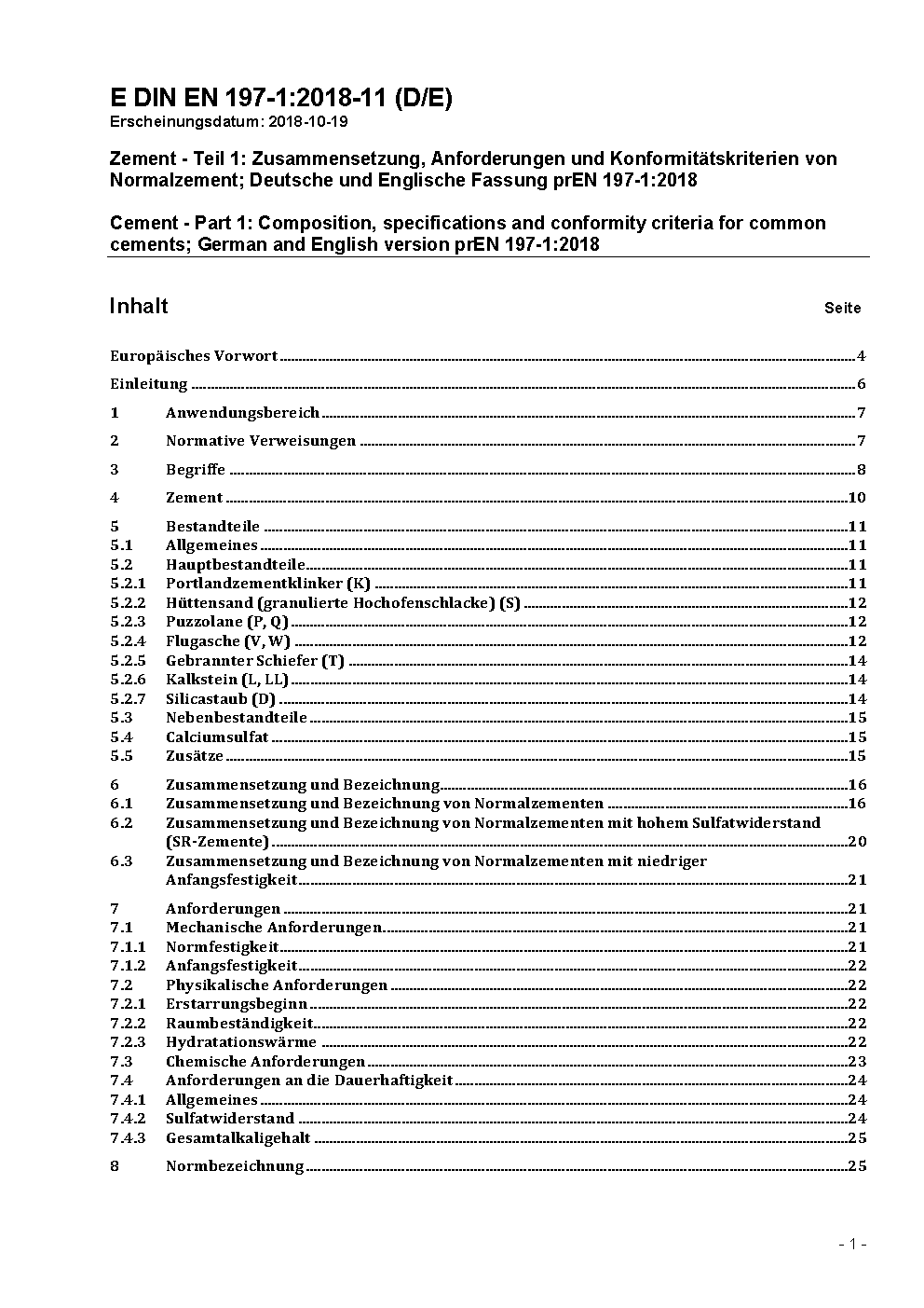 DIN 1164 (2000-11) remains valid alongside this standard until 2006-01-31.*A transition period, as set out in DIN EN 197-1 (2011-11), exists under certain conditions until 2013-05-31.