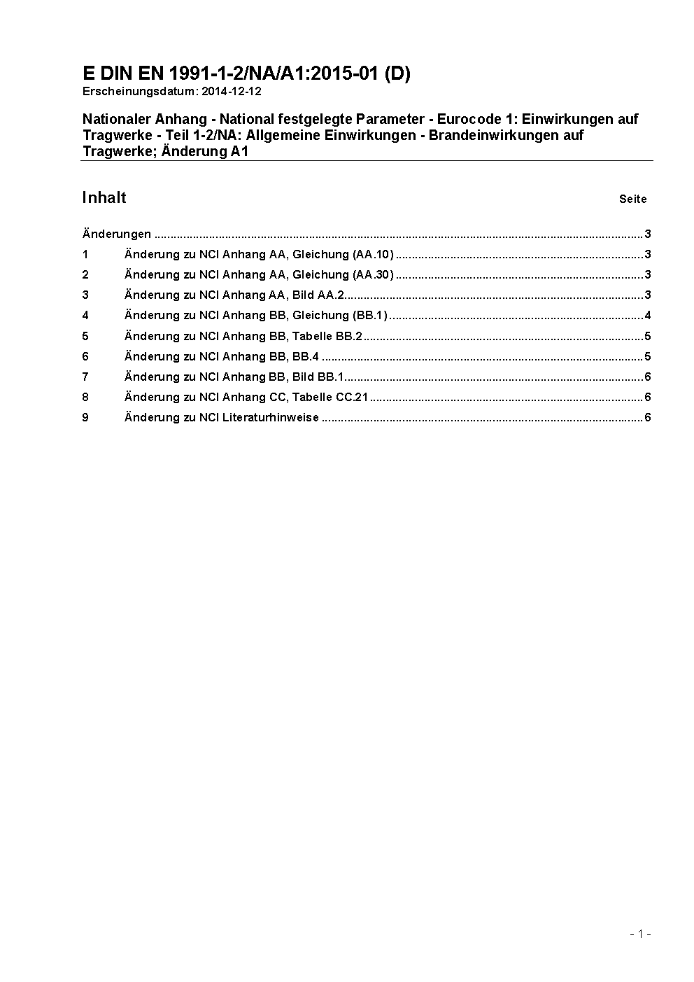 Nationaler Anhang - National festgelegte Parameter - Eurocode 1: Einwirkungen auf Tragwerke - Teil 1-2: Allgemeine Einwirkungen - Brandeinwirkungen auf Tragwerke / Achtung: Gilt in Verbindung mit DIN EN 1991-1-2 (2003-09)