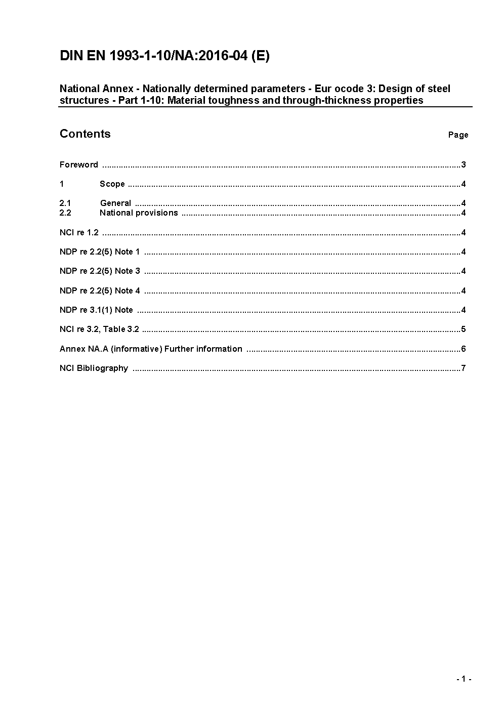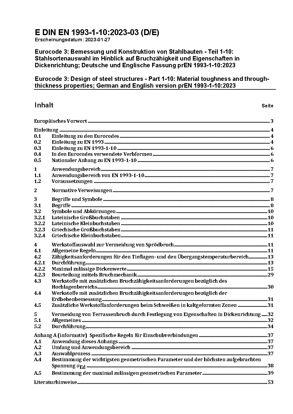Nationaler Anhang - National festgelegte Parameter - Eurocode 3: Bemessung und Konstruktion von Stahlbauten - Teil 1-10: Stahlsortenauswahl im Hinblick auf Bruchzähigkeit und Eigenschaften in Dickenrichtung / Achtung: Gilt in Verbindung mit DIN EN 1993-1-10 (2010-12)