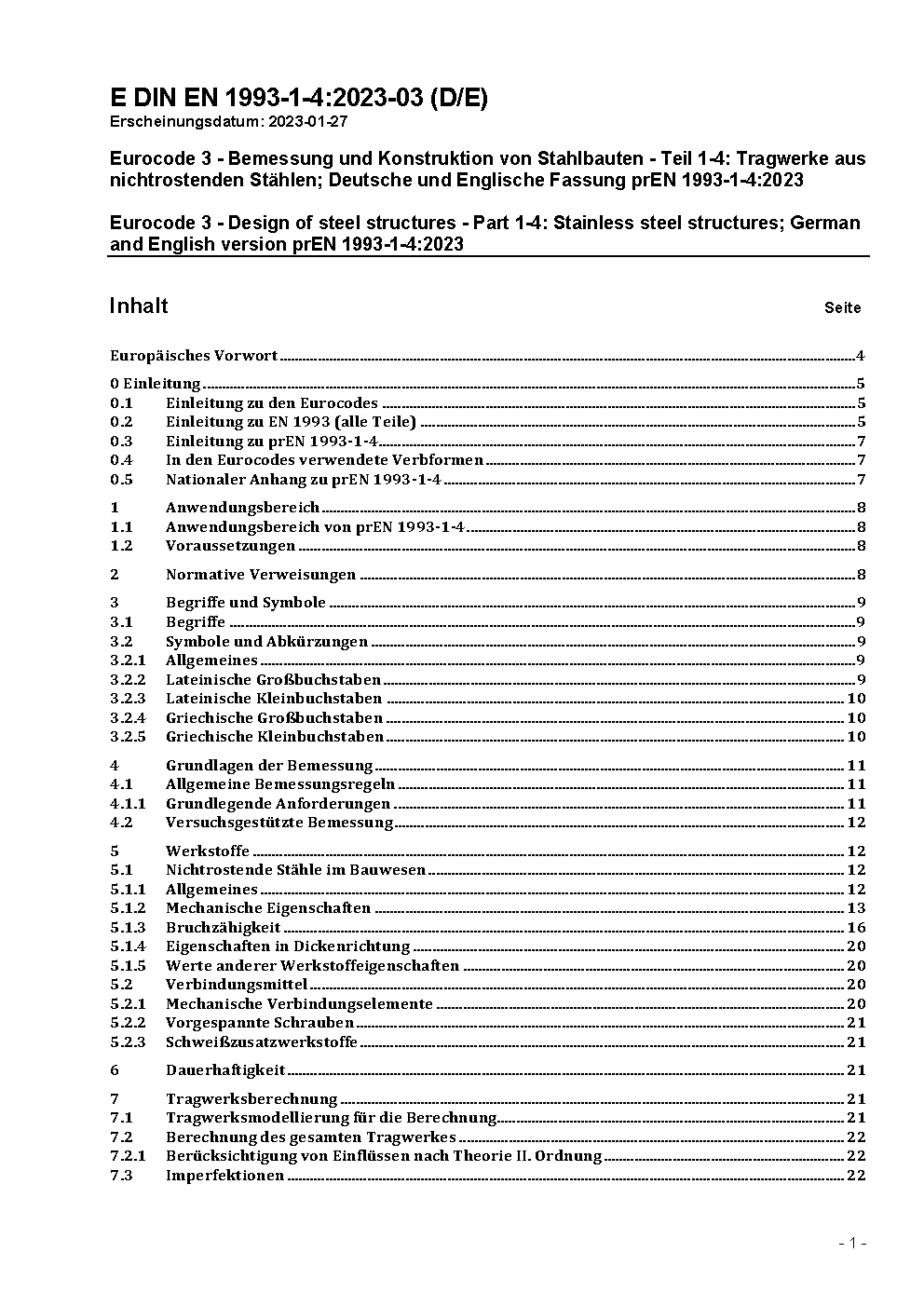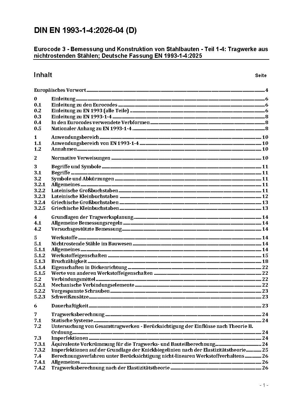 Eurocode 3 - Bemessung und Konstruktion von Stahlbauten - Teil 1-4: Tragwerke aus nichtrostenden Stählen; Deutsche Fassung EN 1993-1-4:2025