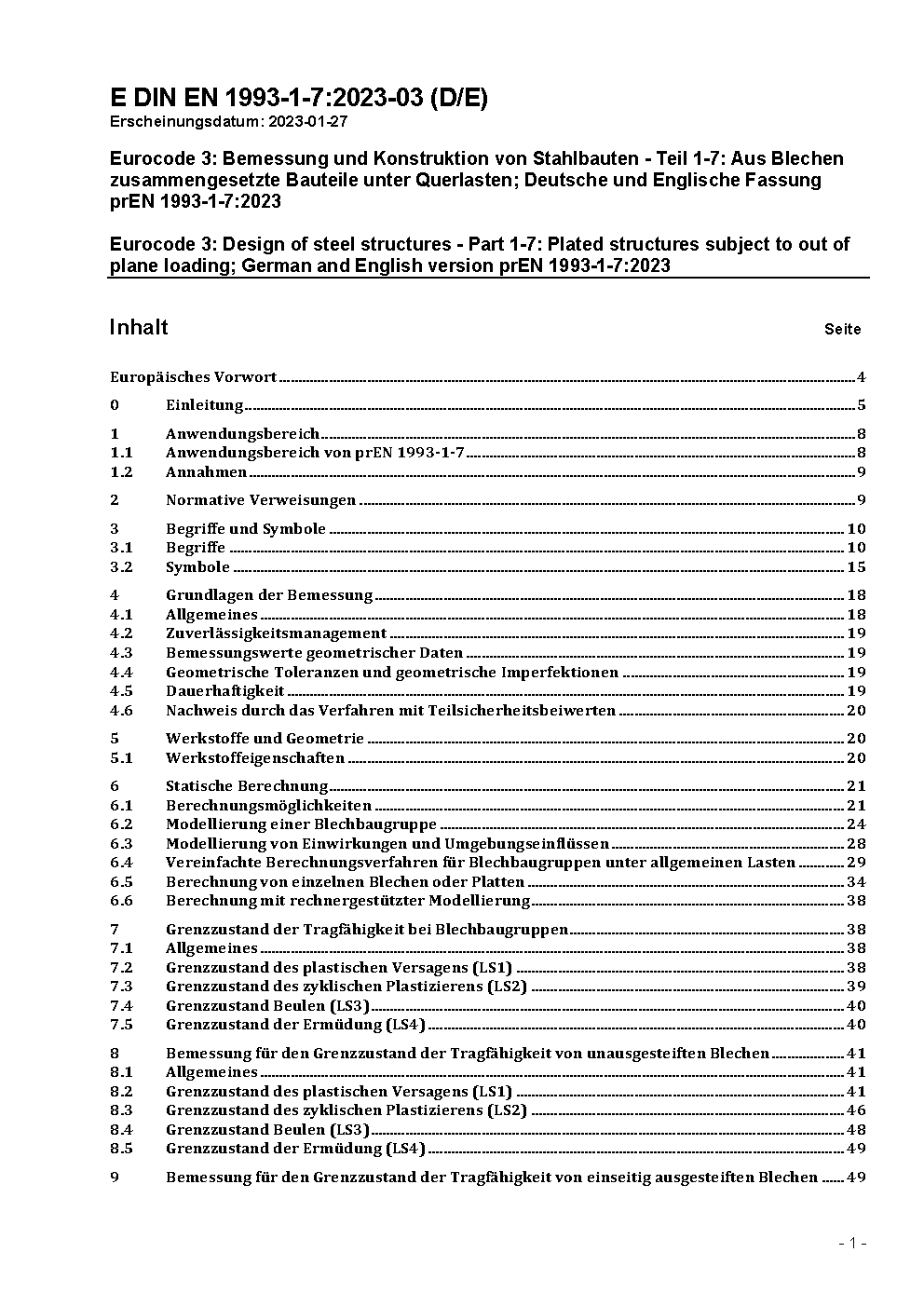 Nationaler Anhang - National festgelegte Parameter - Eurocode 3: Bemessung und Konstruktion von Stahlbauten - Teil 1-7: Plattenförmige Bauteile mit Querbelastung / Achtung: Gilt in Verbindung mit DIN EN 1993-1-7 (2010-12)