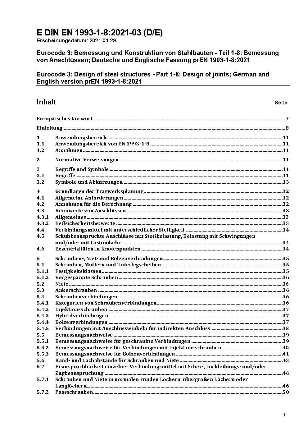 National Annex to DIN EN 1993-1-8:2025-04 - Eurocode 3 - Design of steel structures - Part 1-8: Joints.