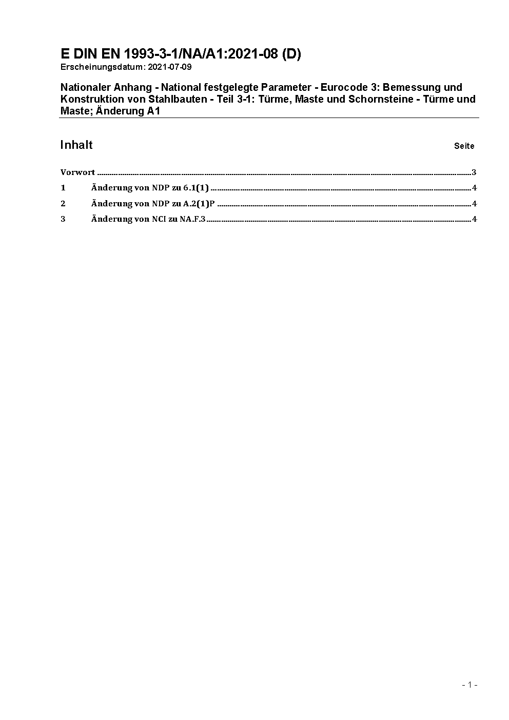 Eurocode 3: Bemessung und Konstruktion von Stahlbauten - Teil 3-1: Türme, Maste und Schornsteine - Türme und Maste; Deutsche Fassung EN 1993-3-1:2006 + AC:2009