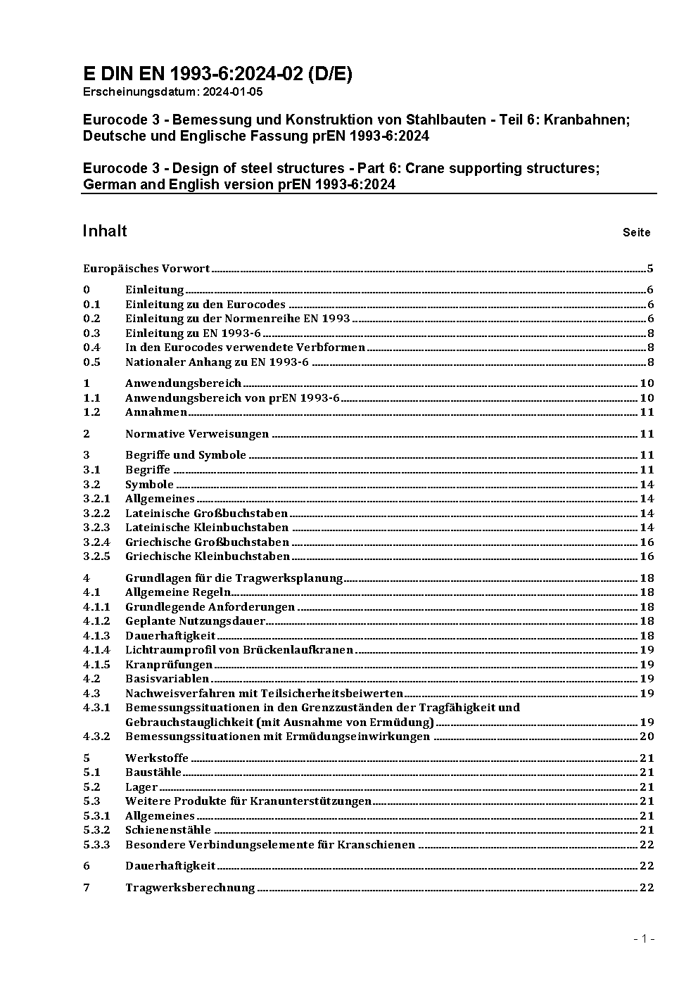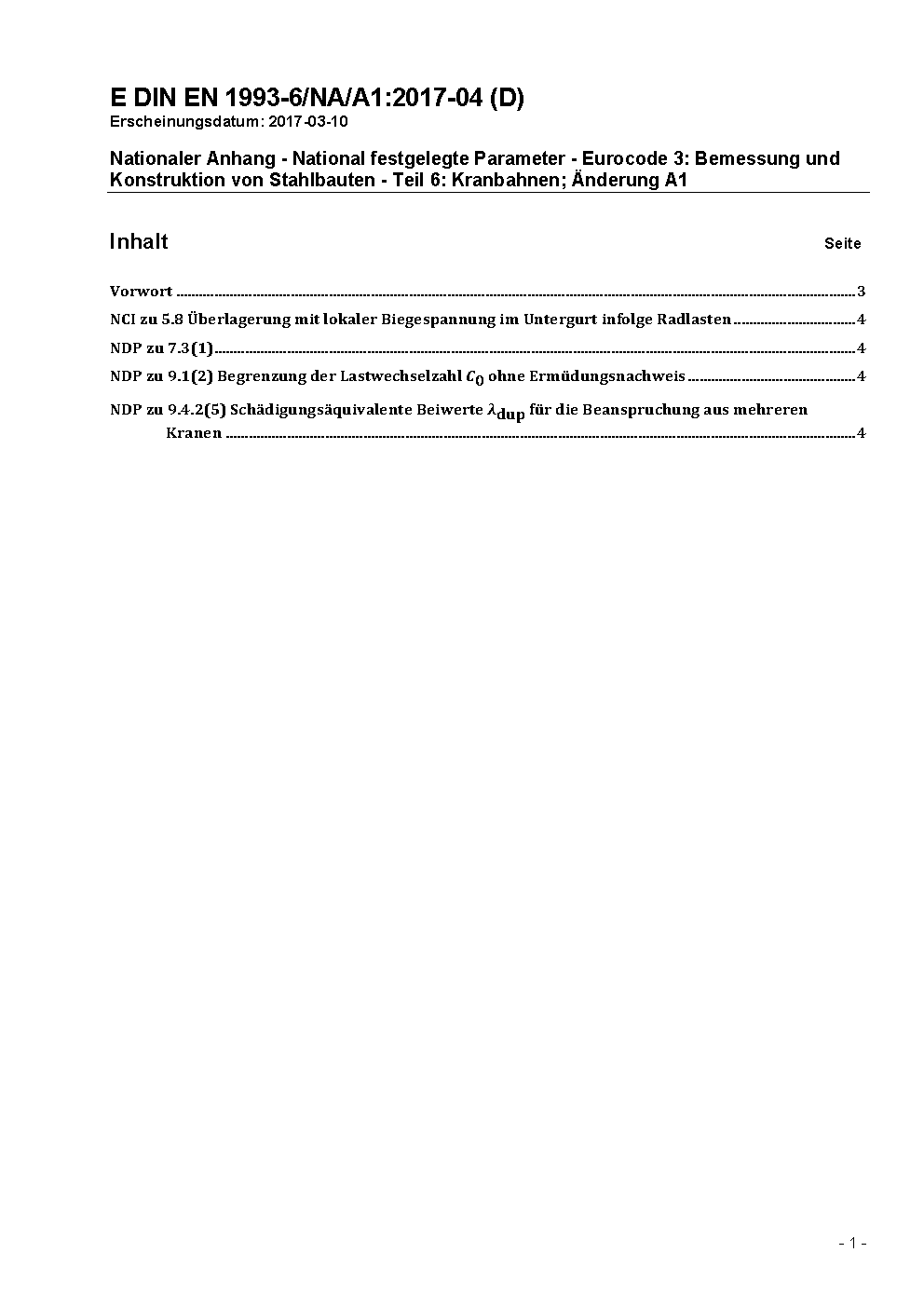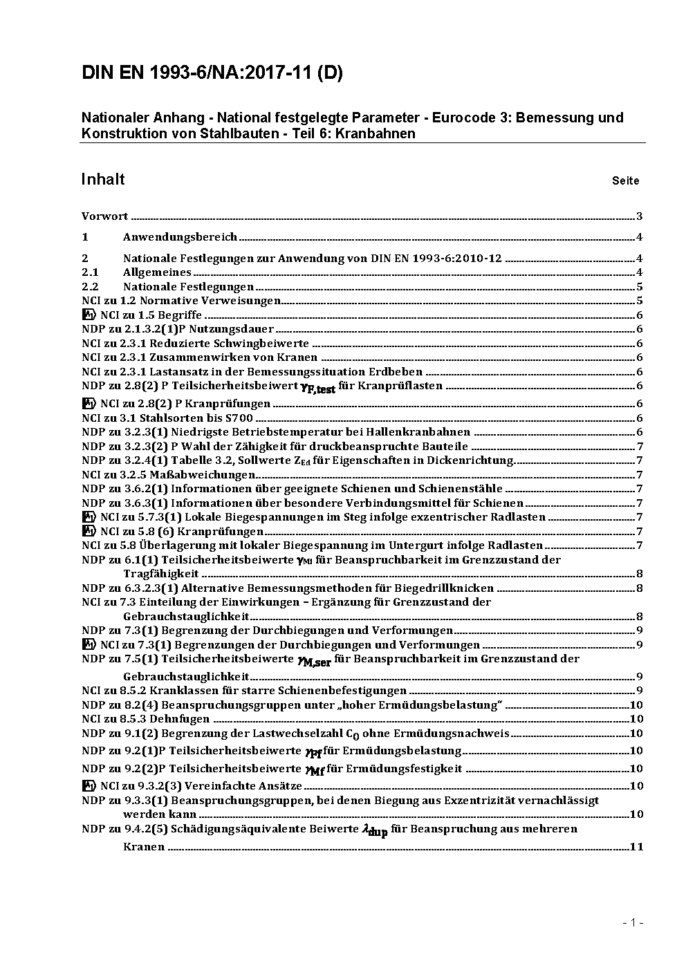 Nationaler Anhang - National festgelegte Parameter - Eurocode 3: Bemessung und Konstruktion von Stahlbauten - Teil 6: Kranbahnen / Achtung: Gilt in Verbindung mit DIN EN 1993-6 (2007-07)