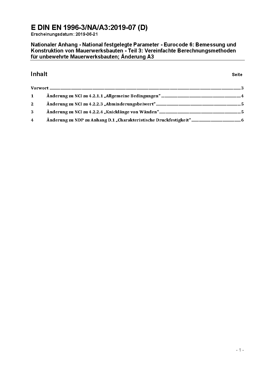 Nationaler Anhang - National festgelegte Parameter - Eurocode 6: Bemessung und Konstruktion von Mauerwerksbauten - Teil 3: Vereinfachte Berechnungsmethoden für unbewehrte Mauerwerksbauten; Änderung A2
