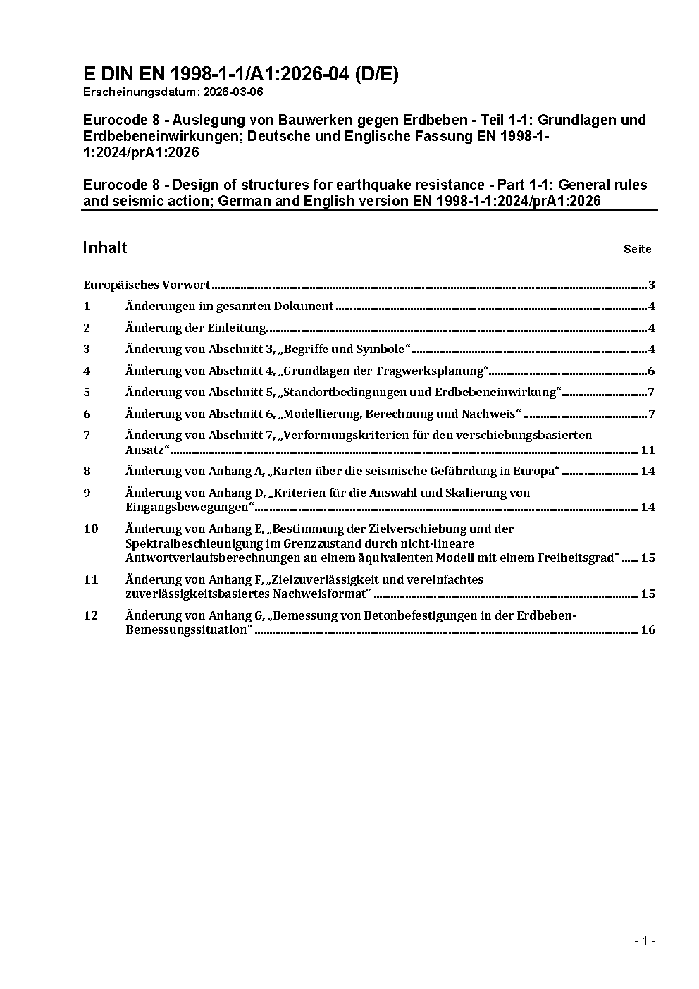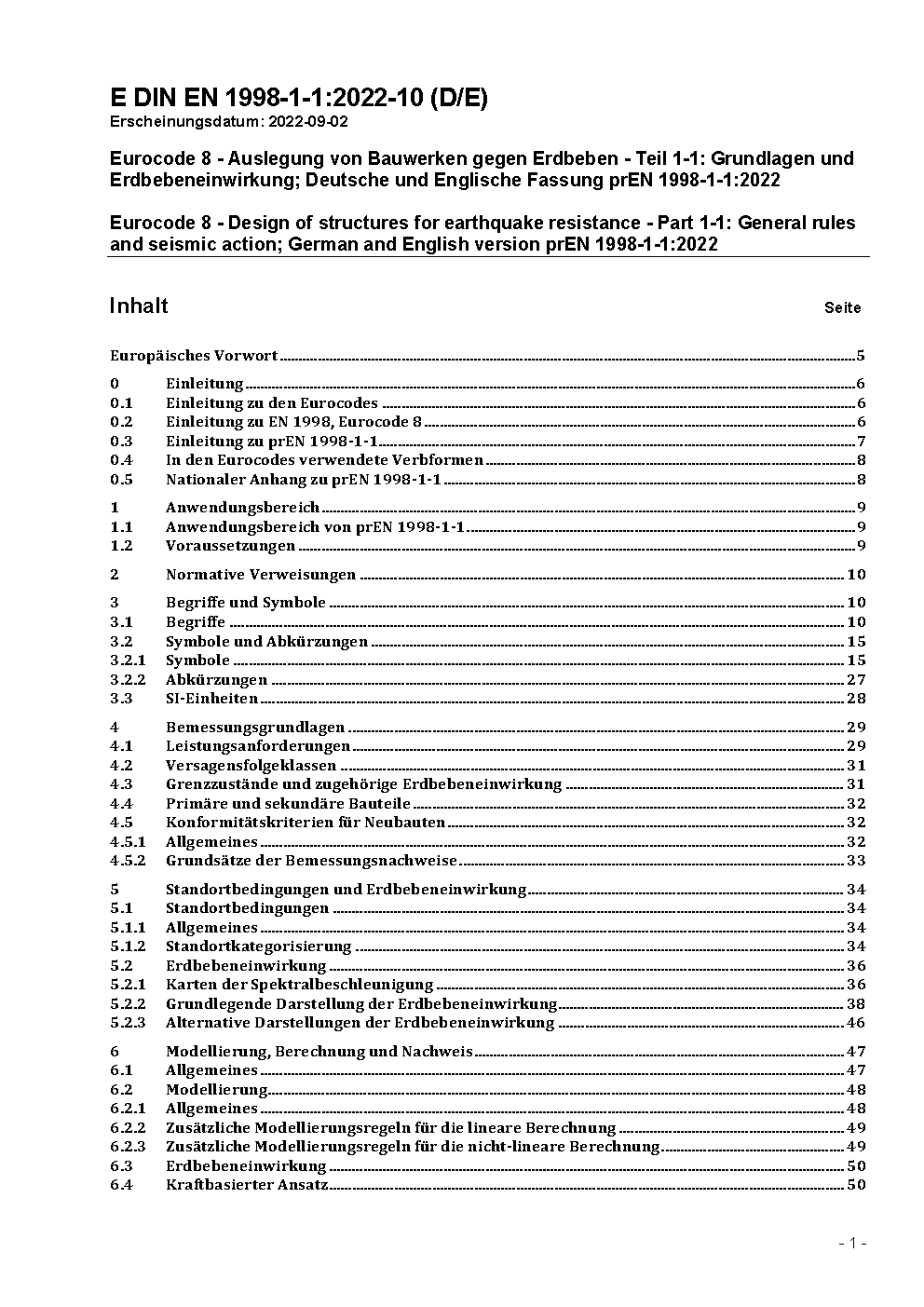 Eurocode 8 - Auslegung von Bauwerken gegen Erdbeben - Teil 1-1: Grundlagen und Erdbebeneinwirkung; Deutsche und Englische Fassung prEN 1998-1-1:2022