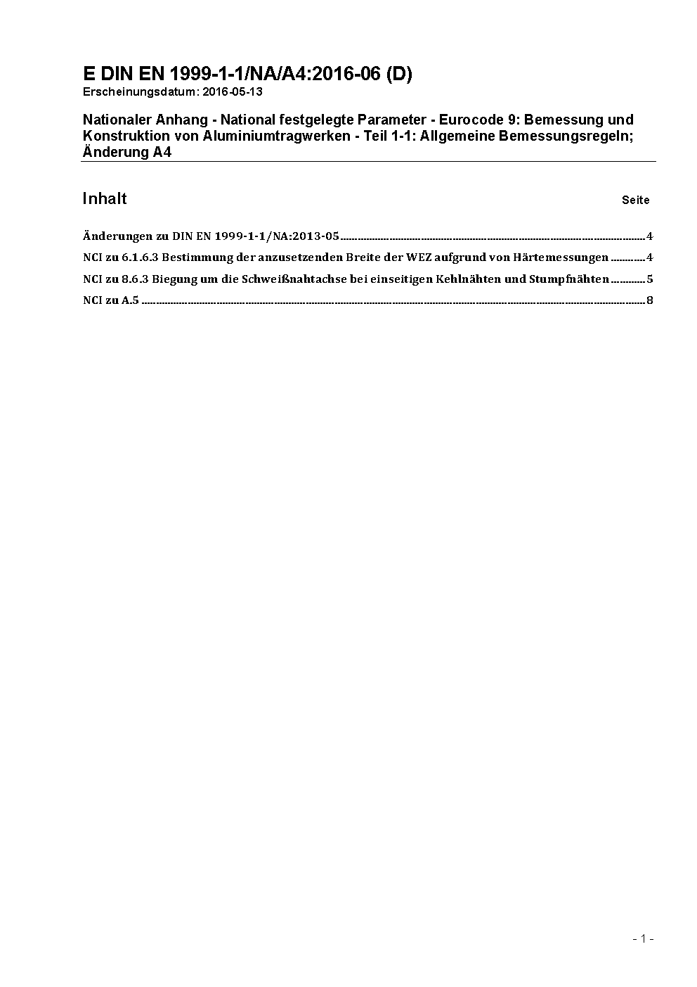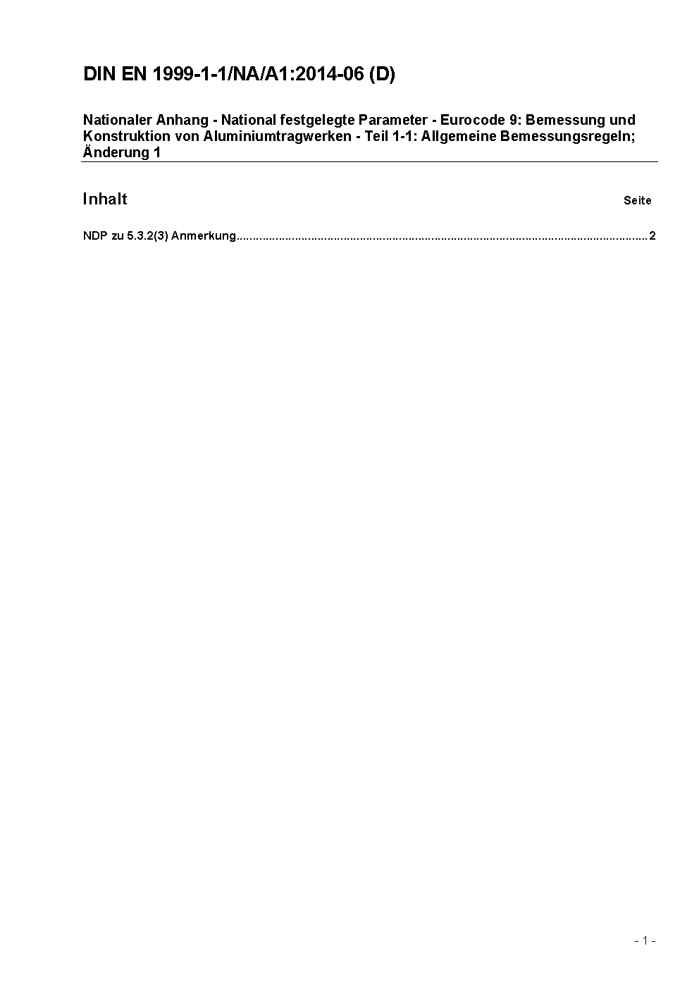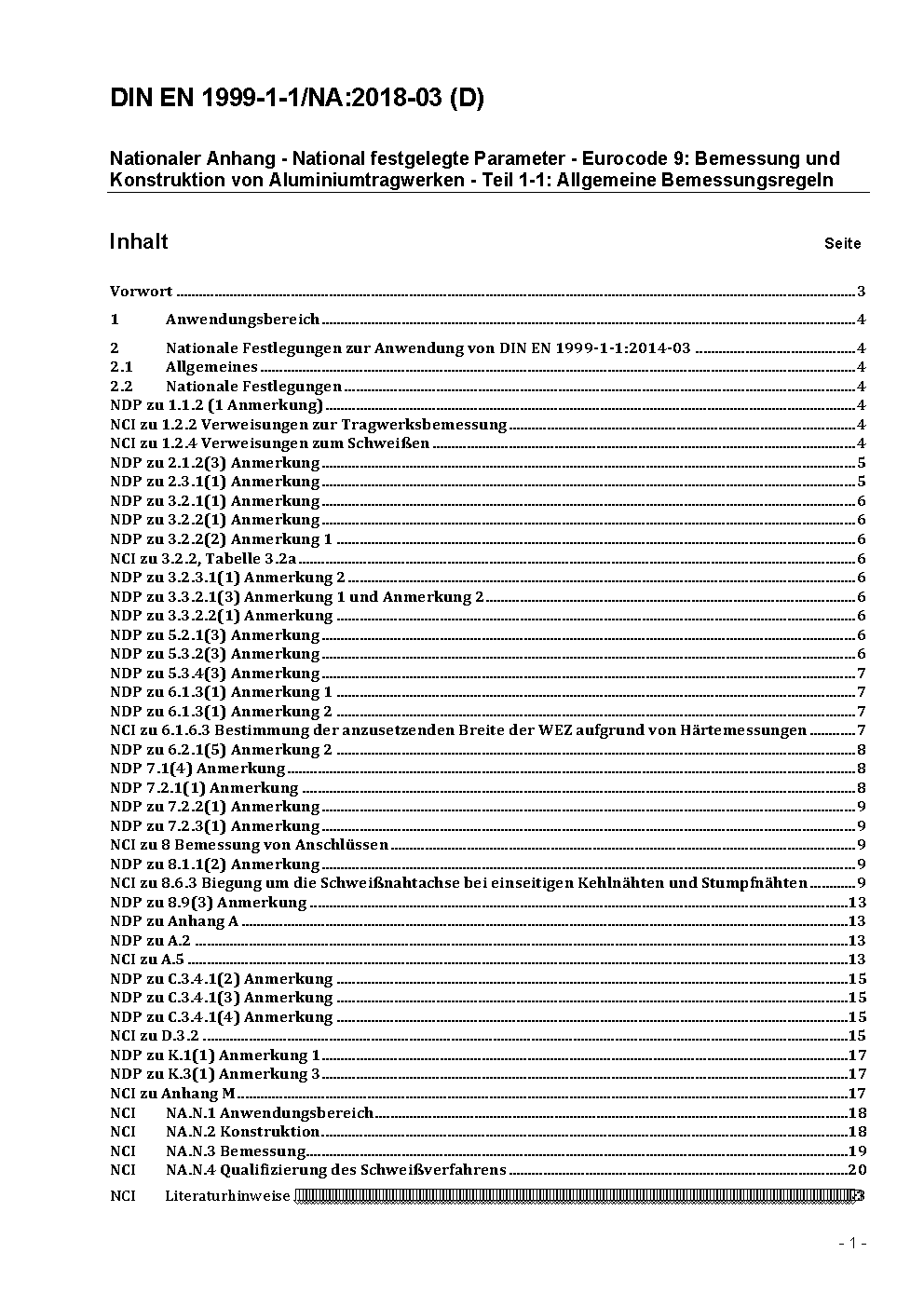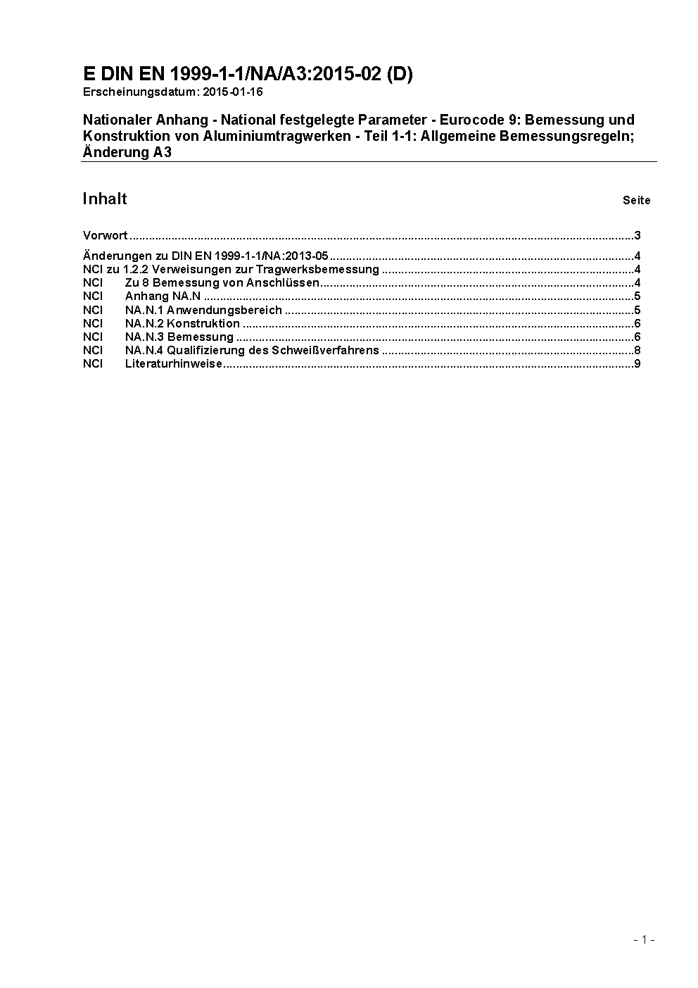 Nationaler Anhang - National festgelegte Parameter - Eurocode 9: Bemessung und Konstruktion von Aluminiumtragwerken - Teil 1-1: Allgemeine Bemessungsregeln, Änderung A1