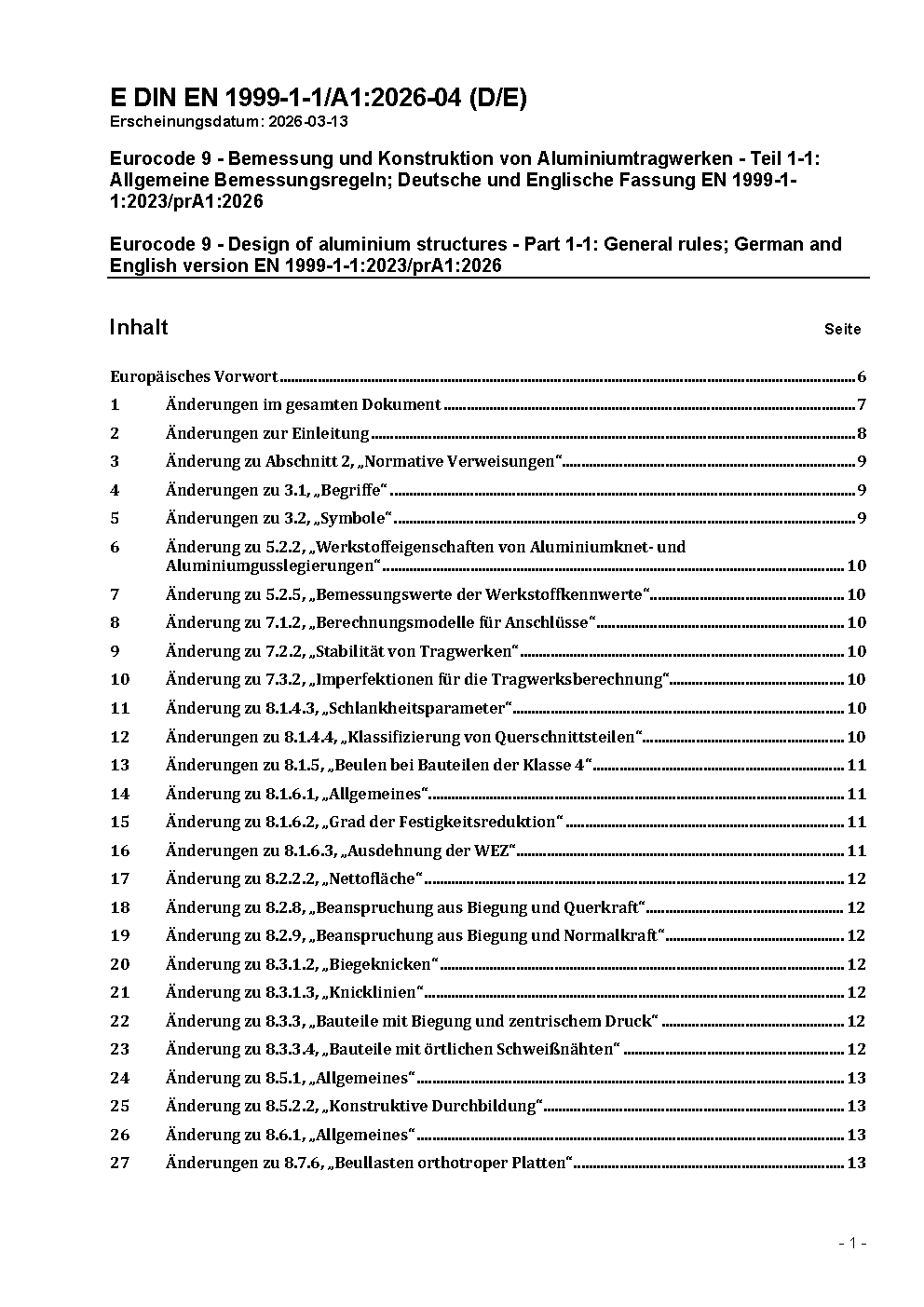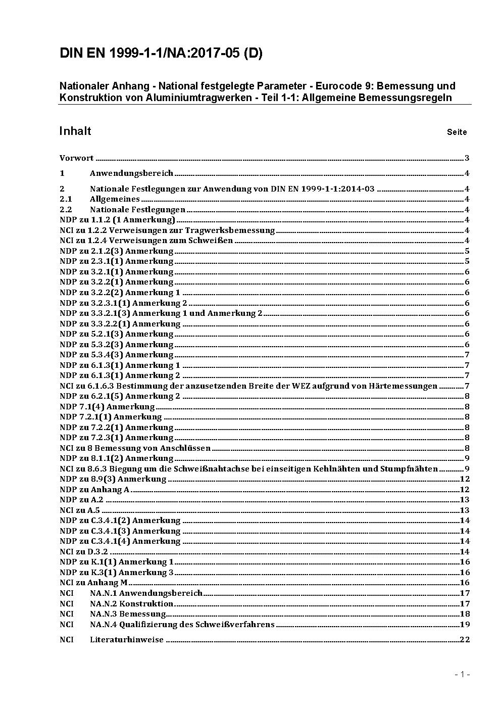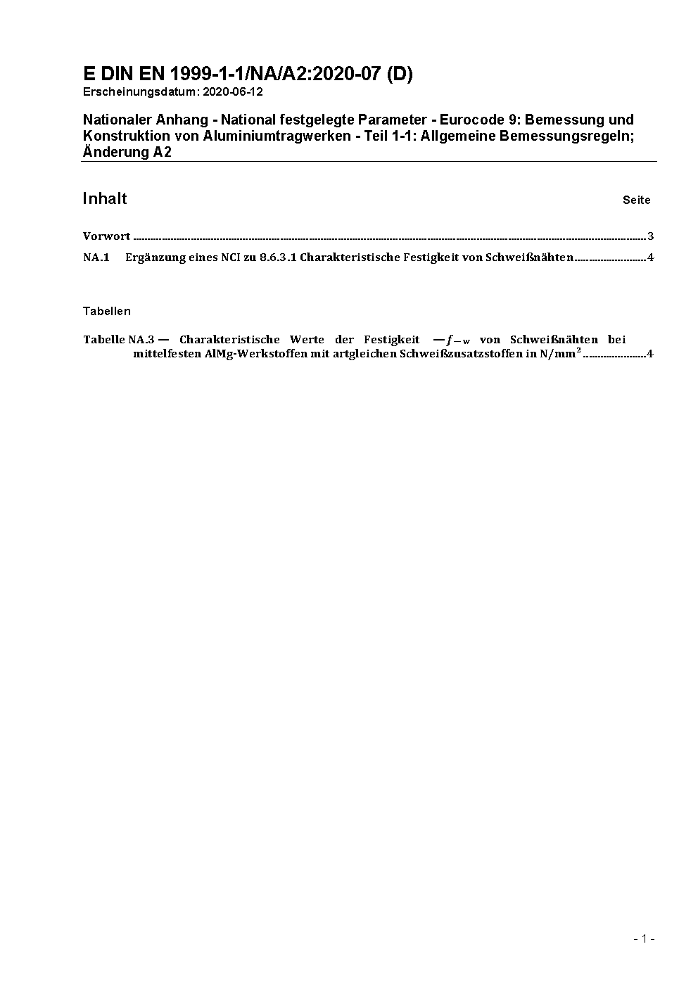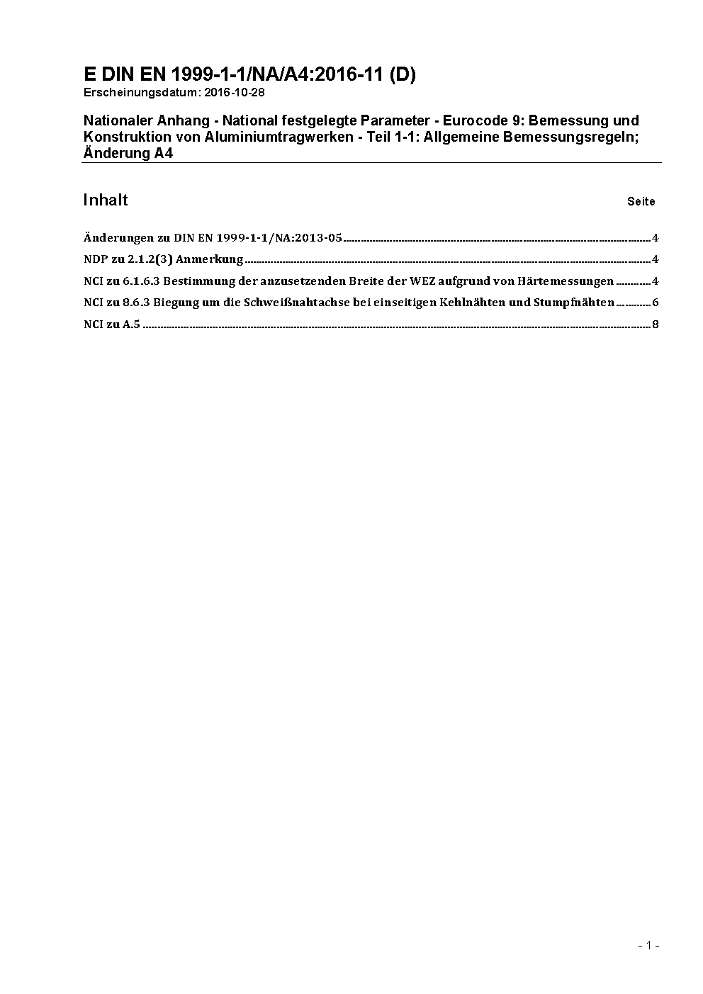 Nationaler Anhang - National festgelegte Parameter - Eurocode 9: Bemessung und Konstruktion von Aluminiumtragwerken - Teil 1-1: Allgemeine Bemessungsregeln, Änderung A1