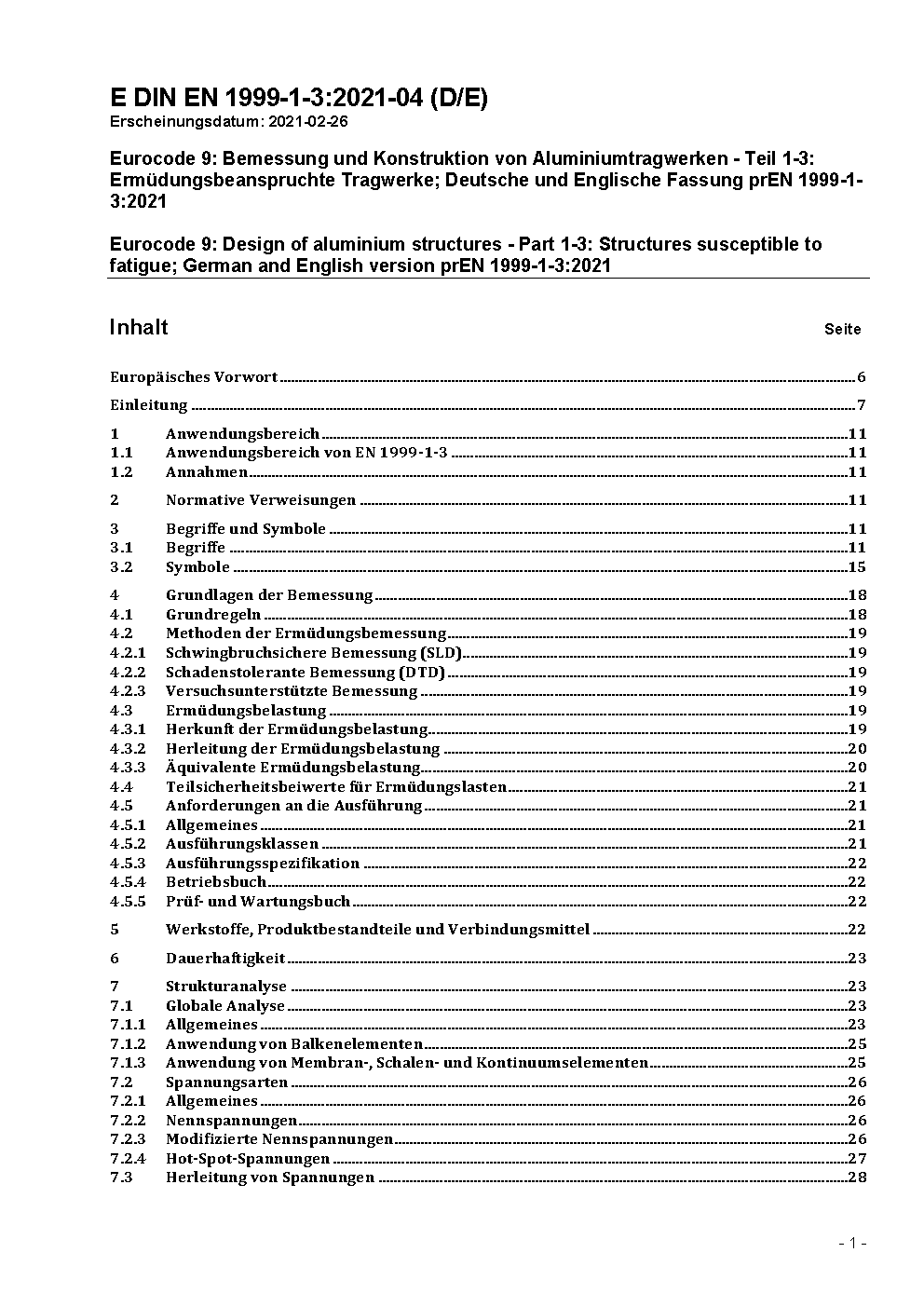 Eurocode 9: Design of aluminium structures - Part 1-3: Structures susceptible to fatigue; German and English version prEN 1999-1-3:2021