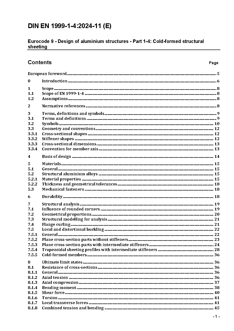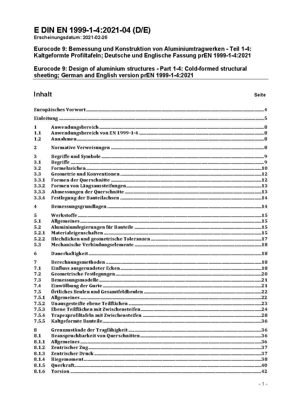 Eurocode 9 - Bemessung und Konstruktion von Aluminiumtragwerken - Teil 1-4: Kaltgeformte Profiltafeln; Deutsche Fassung EN 1999-1-4:2007 + AC:2009