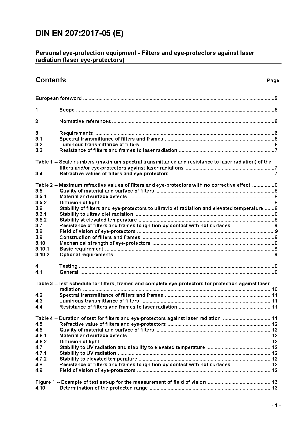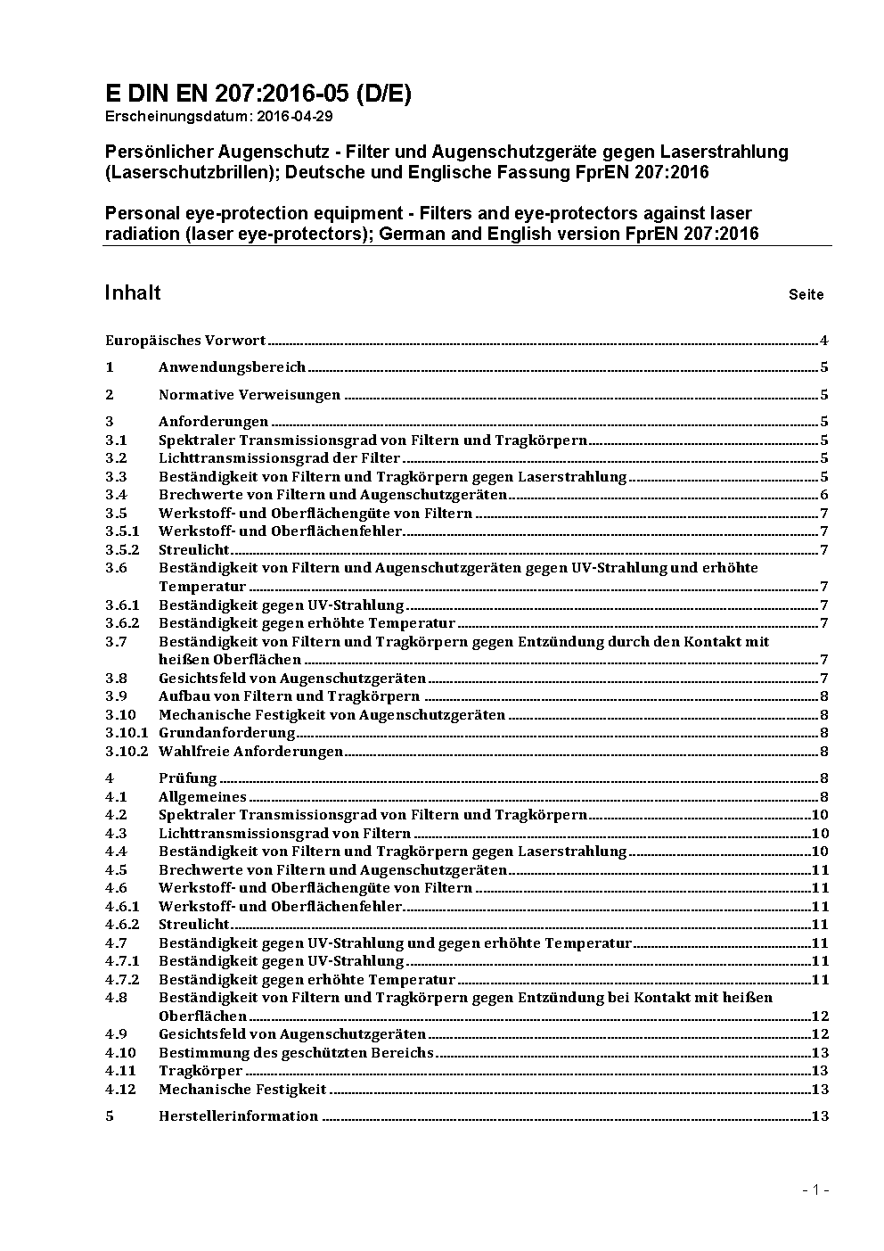 Personal eye-protection equipment - Filters and eye-protectors against laser radiation (laser eye-protectors); German and English version FprEN 207:2016