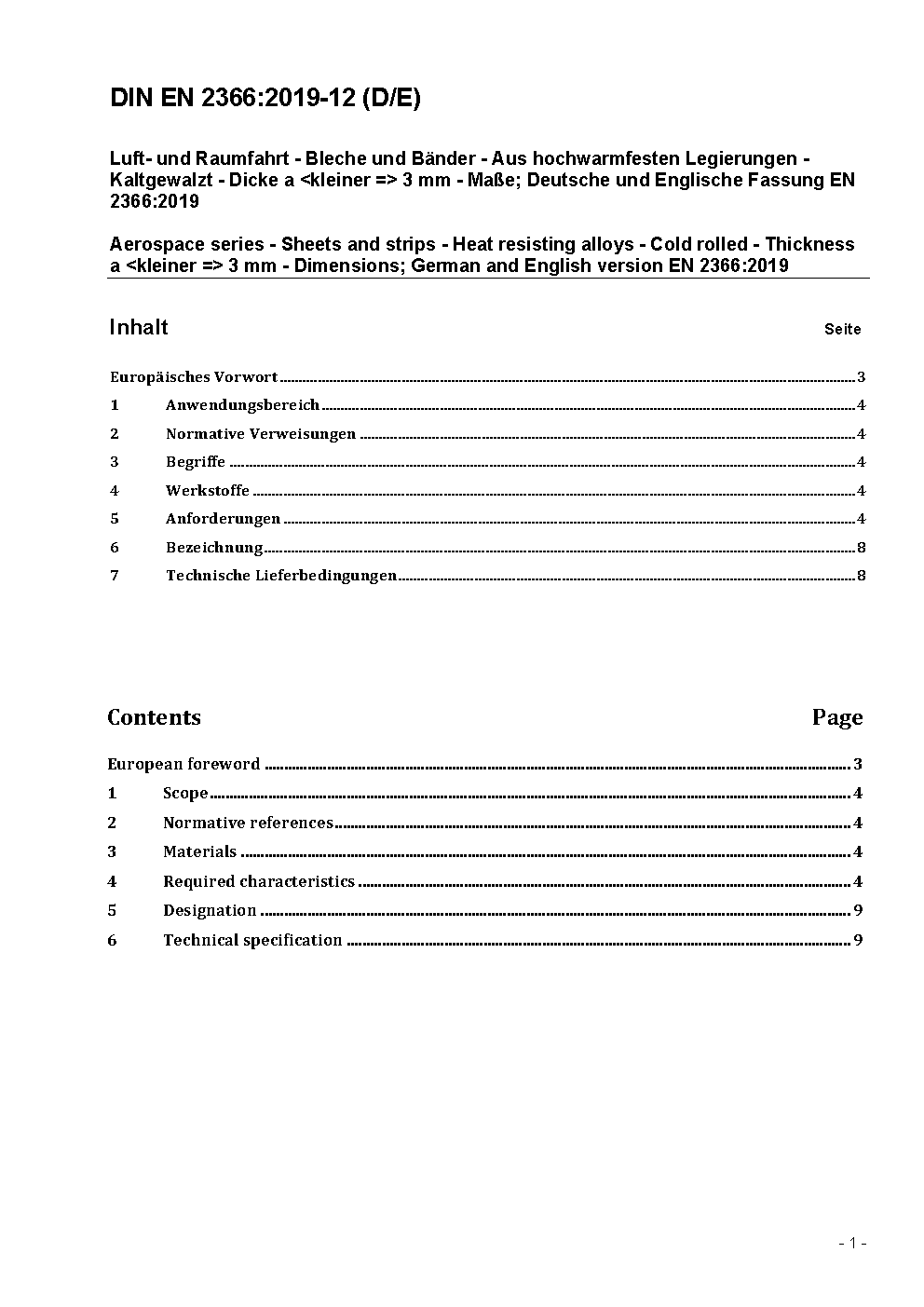 Luft- und Raumfahrt - Bleche und Bänder - Aus hochwarmfesten Legierungen - Kaltgewalzt - Dicke a 3 mm - Maße; Deutsche und Englische Fassung EN 2366:2019
