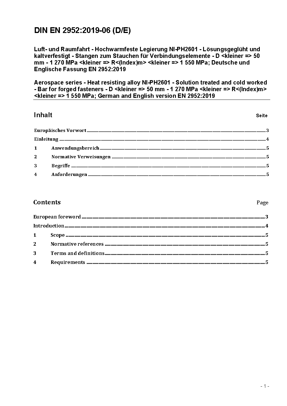 Luft- und Raumfahrt - Hochwarmfeste Legierung NI-PH2601, lösungsgeglüht und kaltverfestigt; Stangen zum Stauchen für Verbindungselemente D 50 mm, 1270 MPa R<(Index)m> 1470 MPa