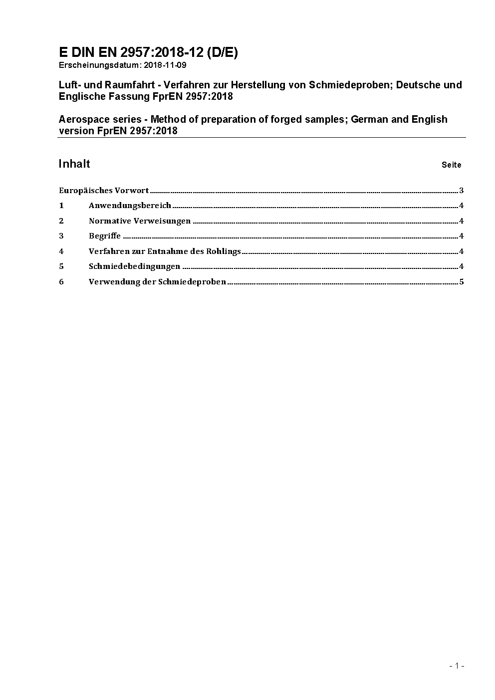 Luft- und Raumfahrt; Verfahren zur Herstellung von Schmiedeproben