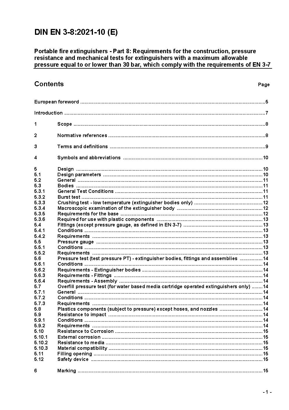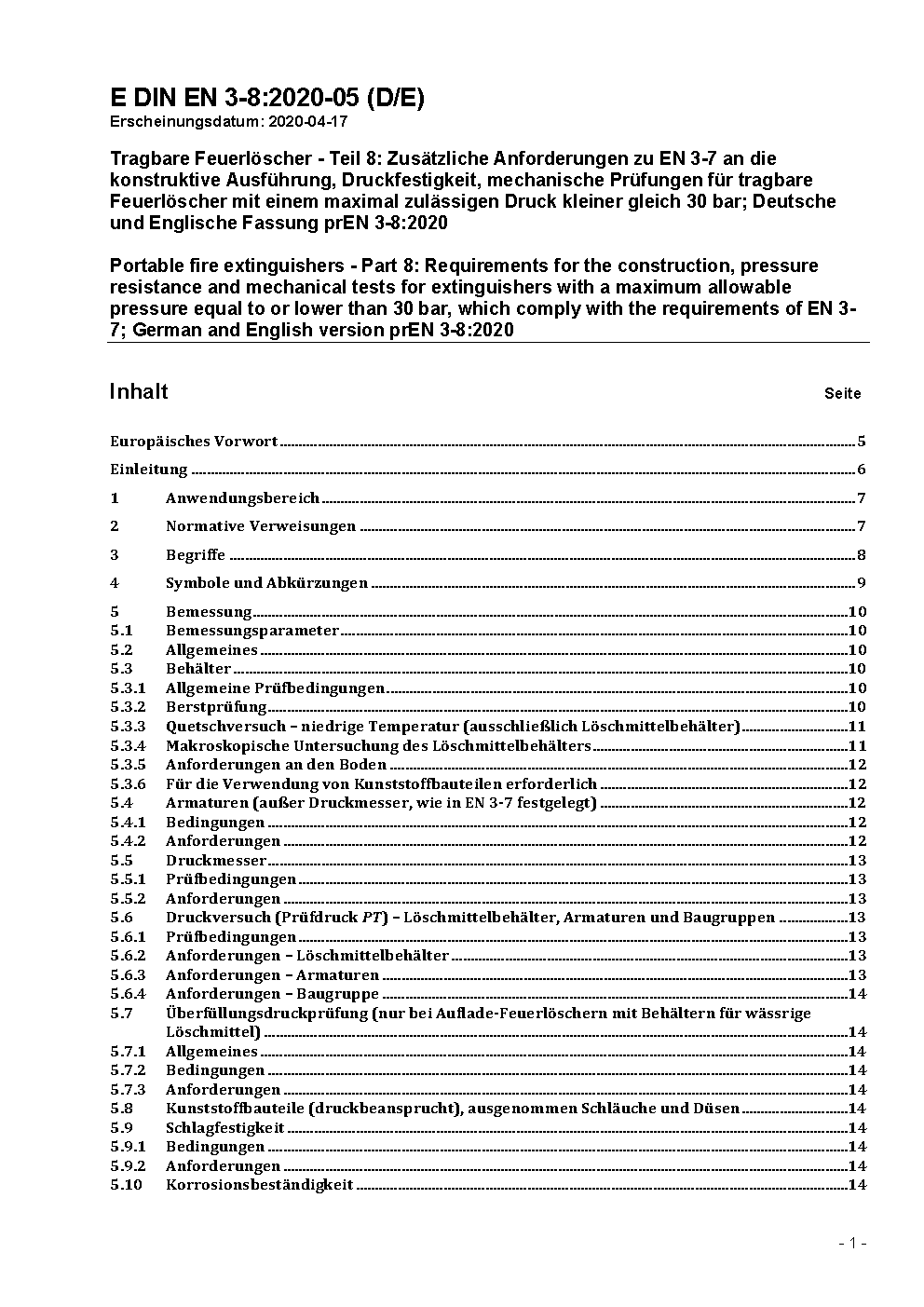 Portable fire extinguishers - Part 8: Requirements for the construction, pressure resistance and mechanical tests for extinguishers with a maximum allowable pressure equal to or lower than 30 bar, which comply with the requirements of EN 3-7; German version prEN 3-8:2013