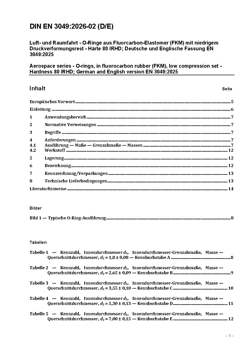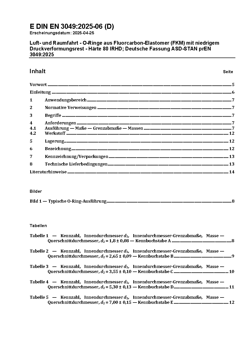 Luft- und Raumfahrt - O-Ringe aus Fluorcarbon-Elastomer (FKM) mit niedrigem Druckverformungsrest - Härte 80 IRHD; Englische Fassung prEN 3049:2024
