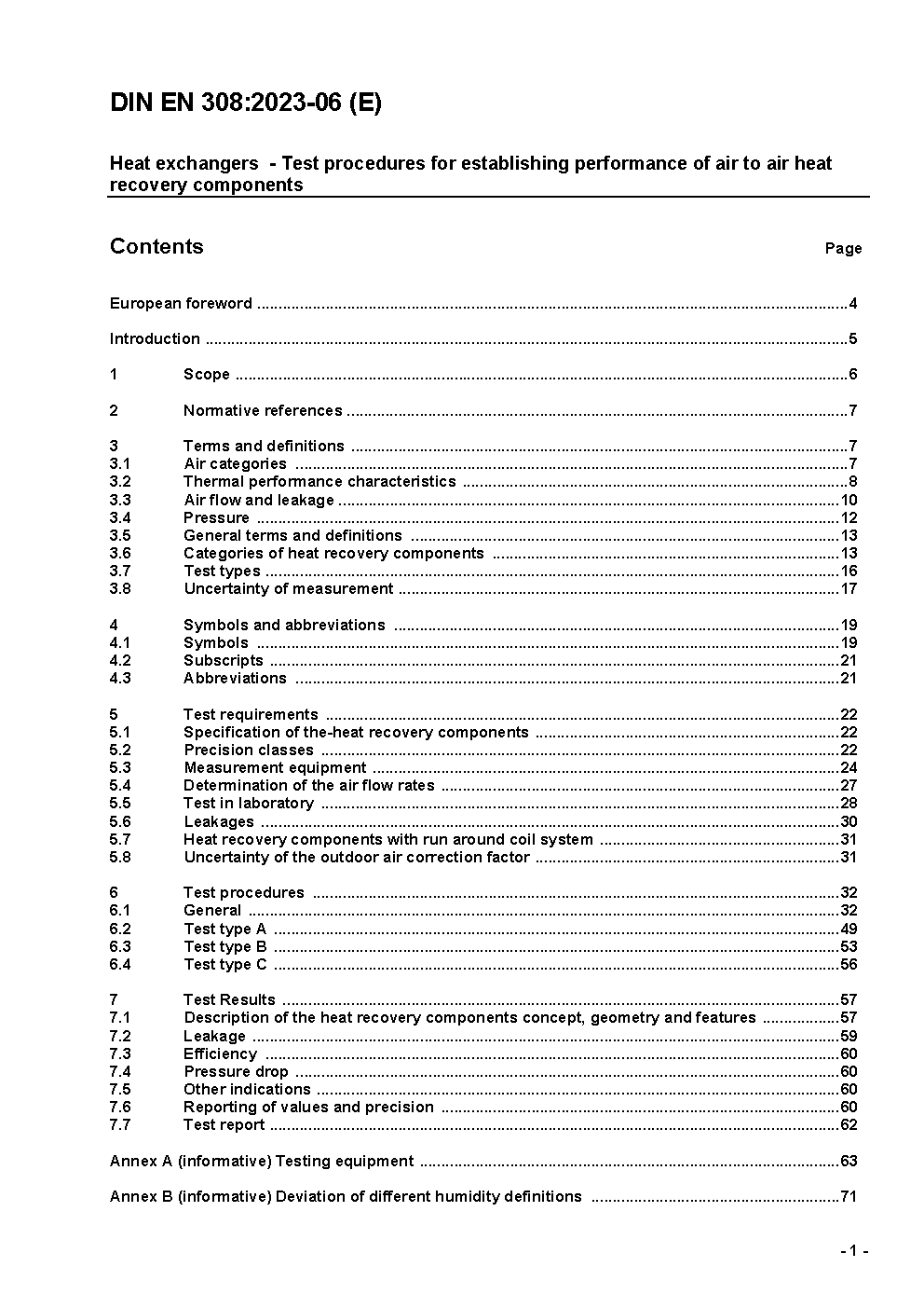 Wärmeaustauscher - Prüfverfahren zur Bestimmung der Leistungskriterien von Luft/Luft- und Luft/Abgas-Wärmerückgewinnungsanlagen; Deutsche Fassung EN 308:1997