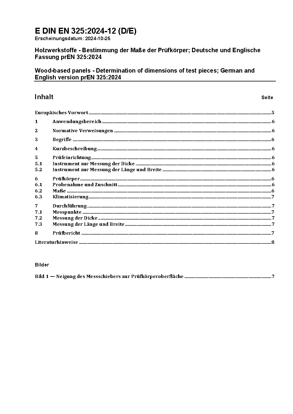 Holzwerkstoffe - Bestimmung der Maße der Prüfkörper; Deutsche und Englische Fassung prEN 325:2024