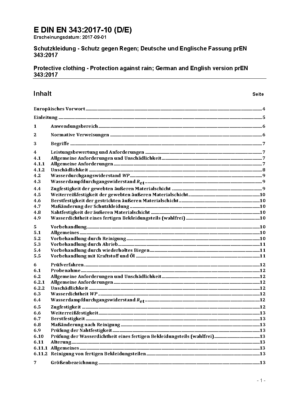 Protective clothing - Protection against rain; German and English version prEN 343:2017