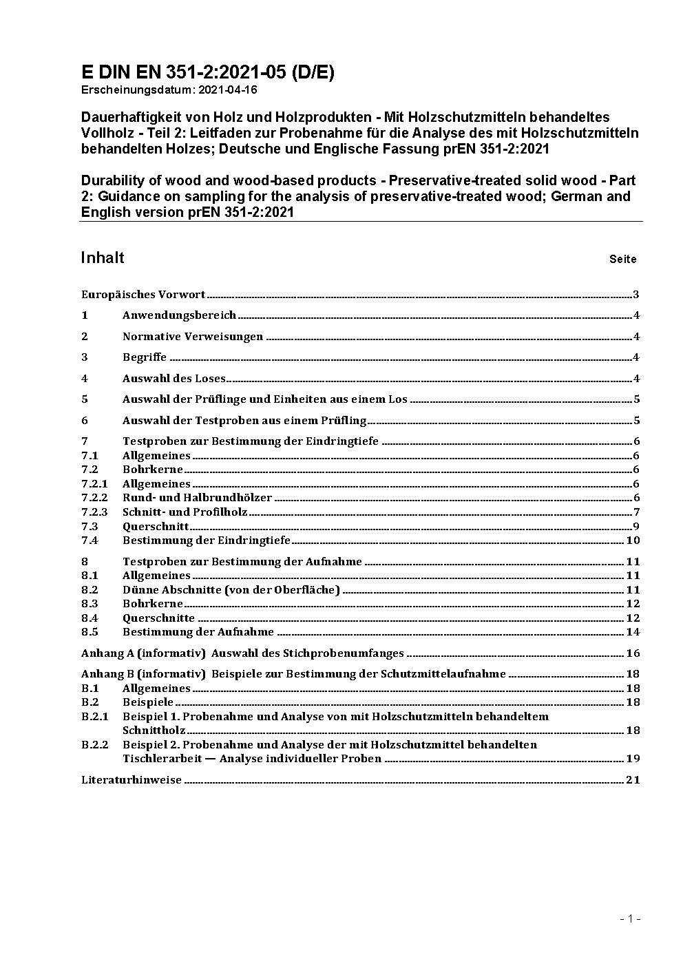 Dauerhaftigkeit von Holz und Holzprodukten - Mit Holzschutzmitteln behandeltes Vollholz - Teil 2: Leitfaden zur Probenentnahme für die Untersuchung des mit Holzschutzmitteln behandelten Holzes; Deutsche Fassung EN 351-2:2007