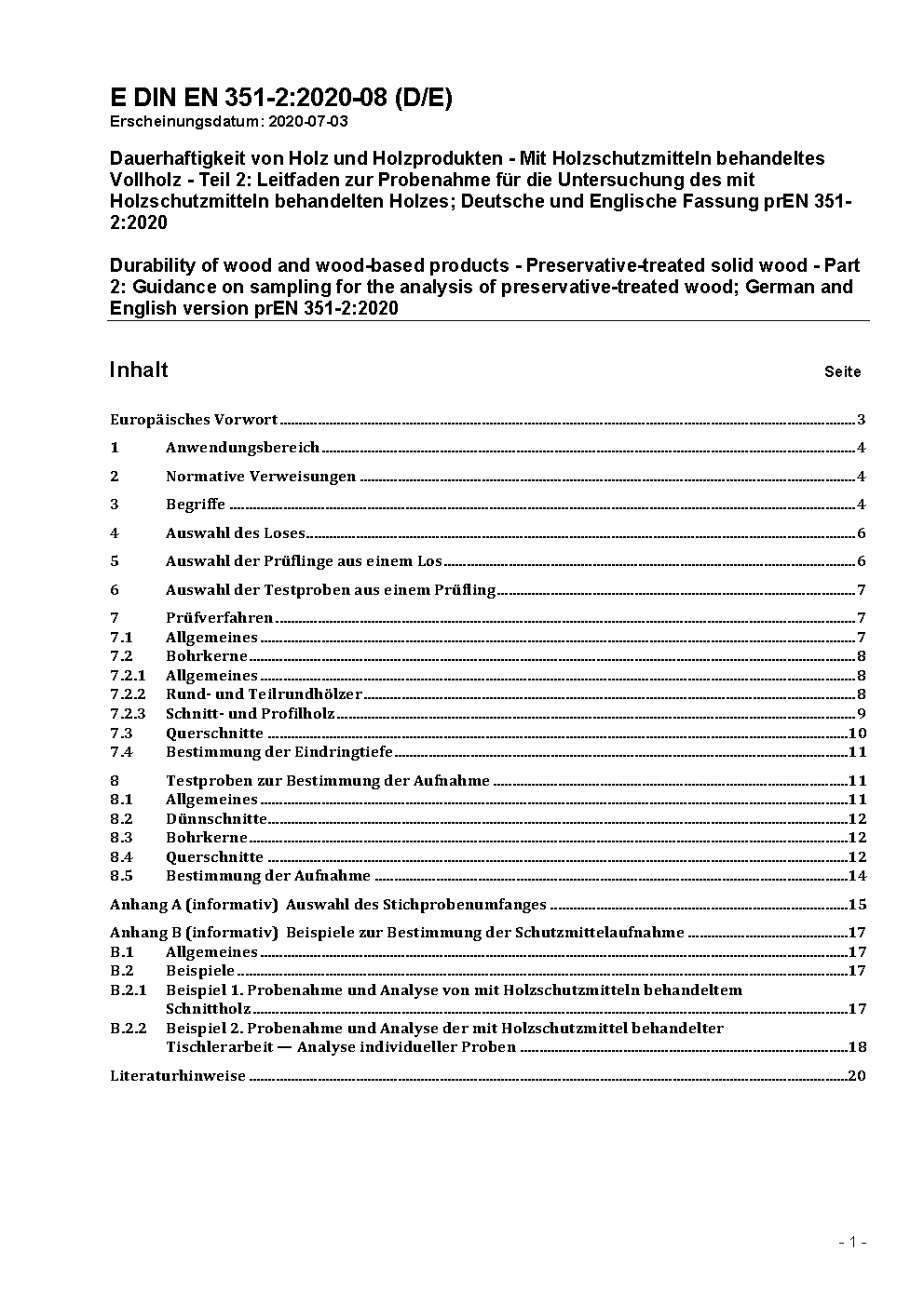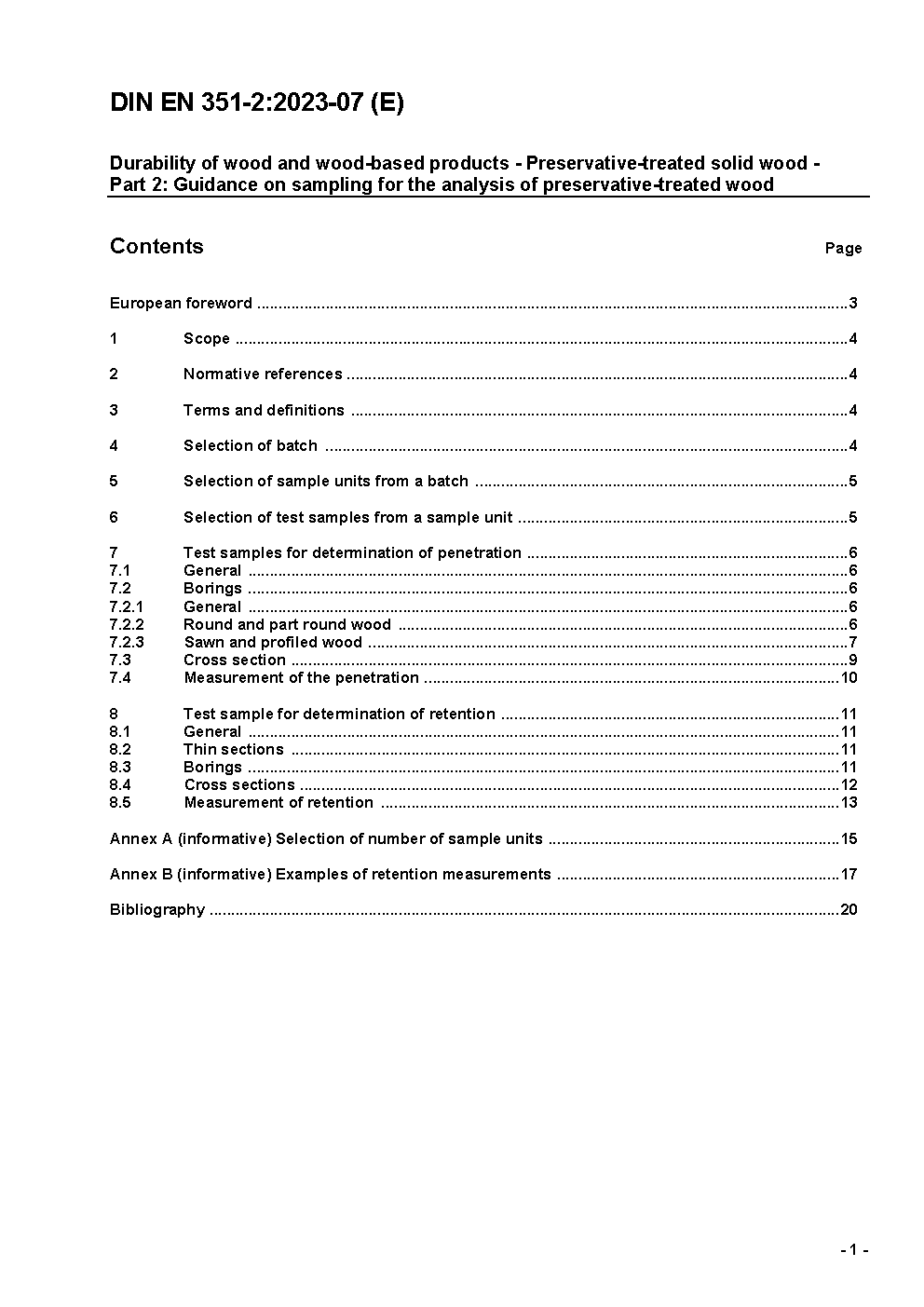 Durability of wood and wood-based products - Preservative-treated solid wood - Part 2: Guidance on sampling for the analysis of preservative-treated wood; German version EN 351-2:2007