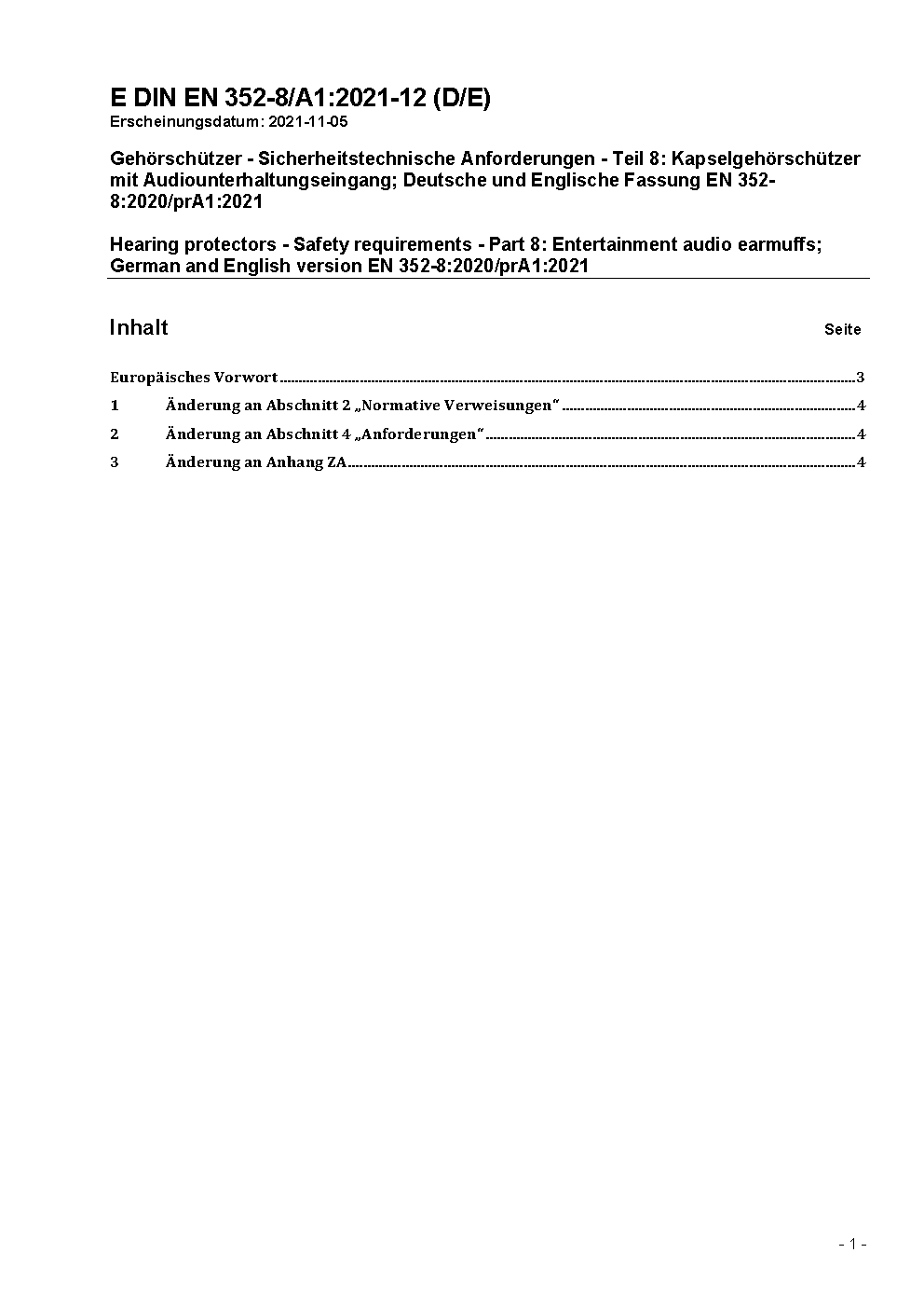 Gehörschützer - Sicherheitstechnische Anforderungen und Prüfungen - Teil 8: Audiokapselgehörschützer für Unterhaltungszwecke; Deutsche Fassung EN 352-8:2008