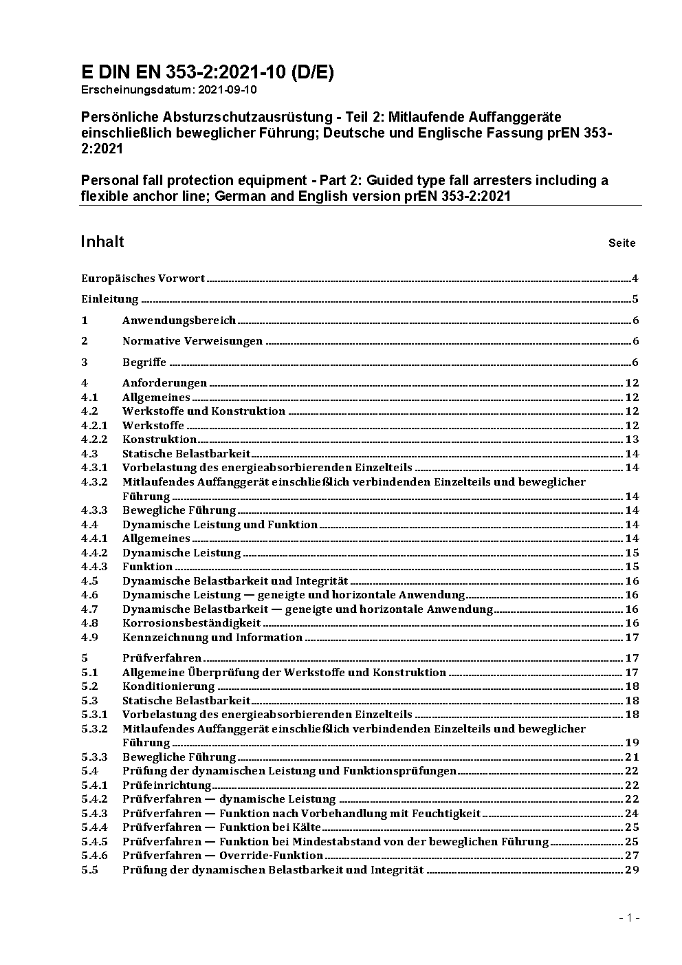 Persönliche Schutzausrüstung gegen Absturz; Mitlaufende Auffanggeräte an beweglicher Führung; Deutsche Fassung EN 353-2:1992
