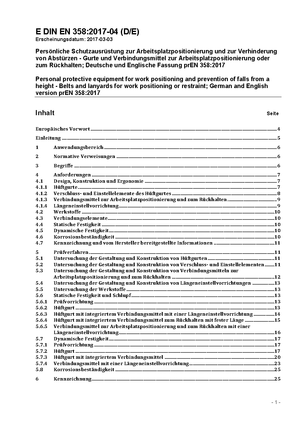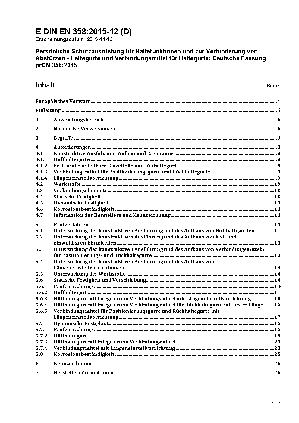 Persönliche Schutzausrüstung für Haltefunktionen und zur Verhinderung von Abstürzen - Haltegurte und Verbindungsmittel für Haltegurte; Deutsche Fassung prEN 358:2015