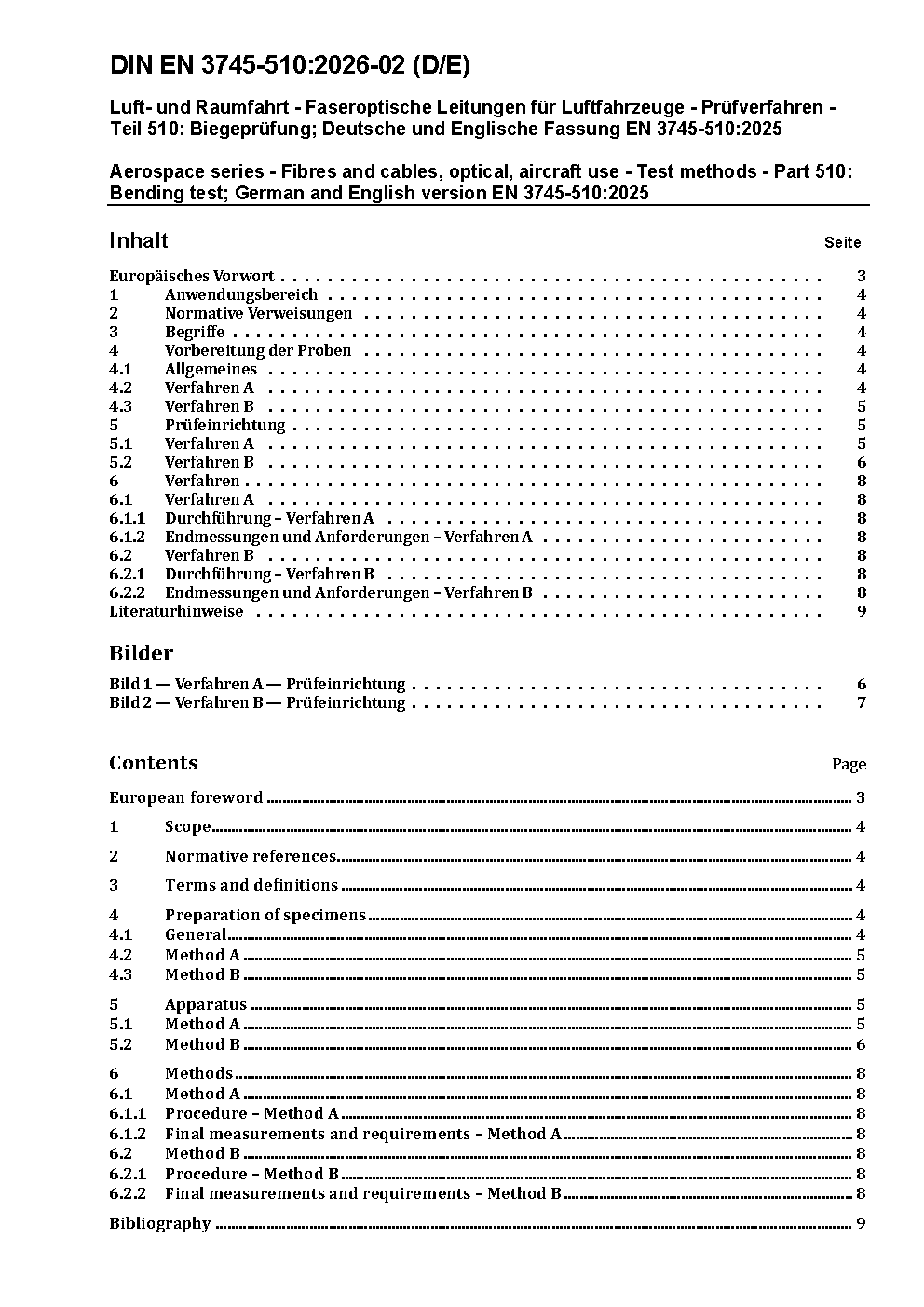 Luft- und Raumfahrt - Faseroptische Leitungen für Luftfahrzeuge - Prüfverfahren - Teil 510: Biegetest; Deutsche und Englische Fassung FprEN 3745-510:2016