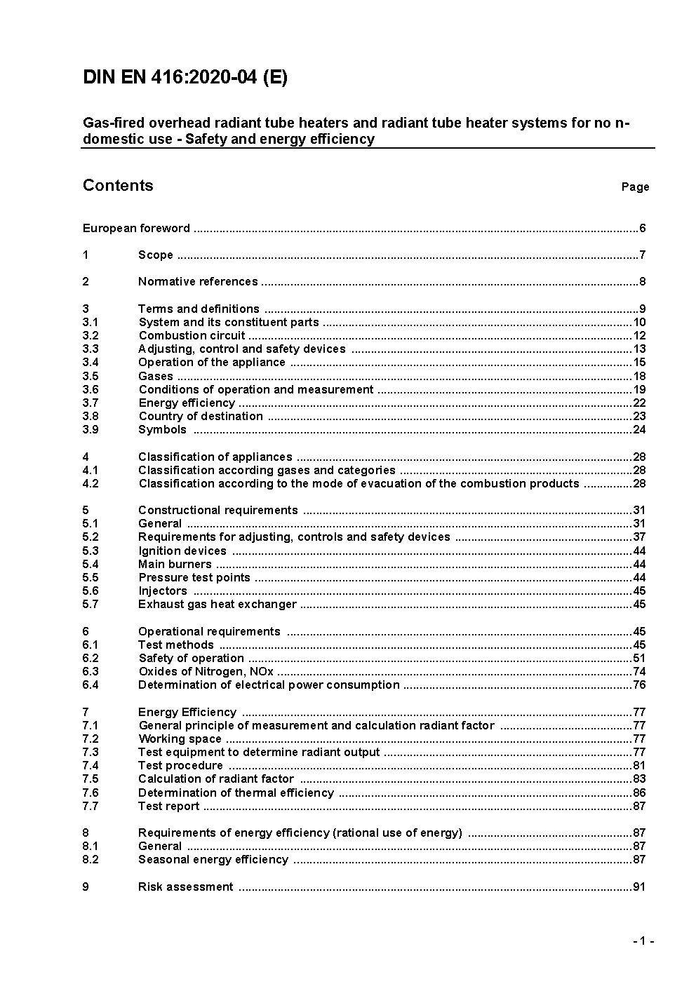 Gasbefeuerte Dunkelstrahler und Dunkelstrahlersysteme für gewerbliche und industrielle Anwendungen - Sicherheit und Energieeffizienz; Deutsche und Englische Fassung prEN 416:2017