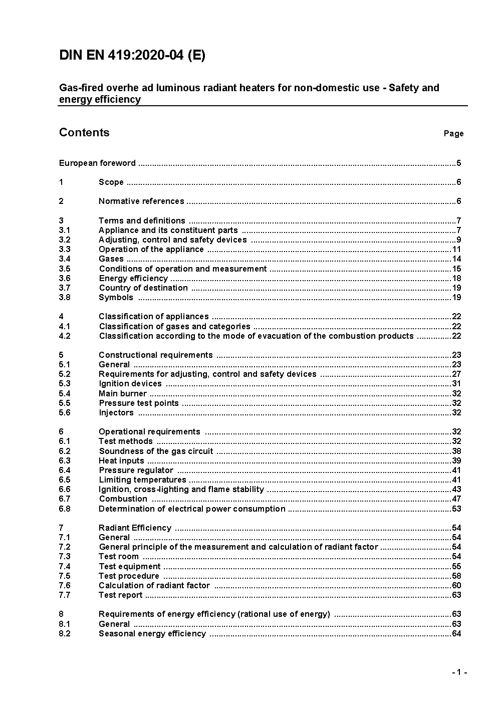 Gas-fired overhead luminous radiant heaters for non-domestic use - Safety and energy efficiency; German and English version prEN 419:2017
