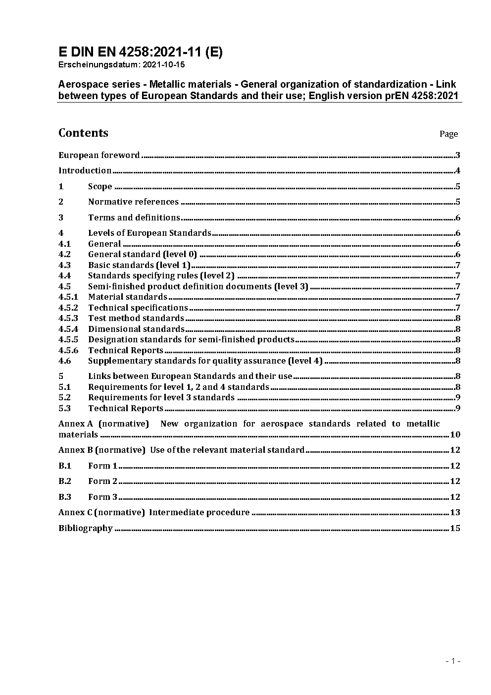 Aerospace series - Metallic materials - General organization of standardization - Link between types of European Standards and their use; German version ASD-STAN prEN 4258:2023