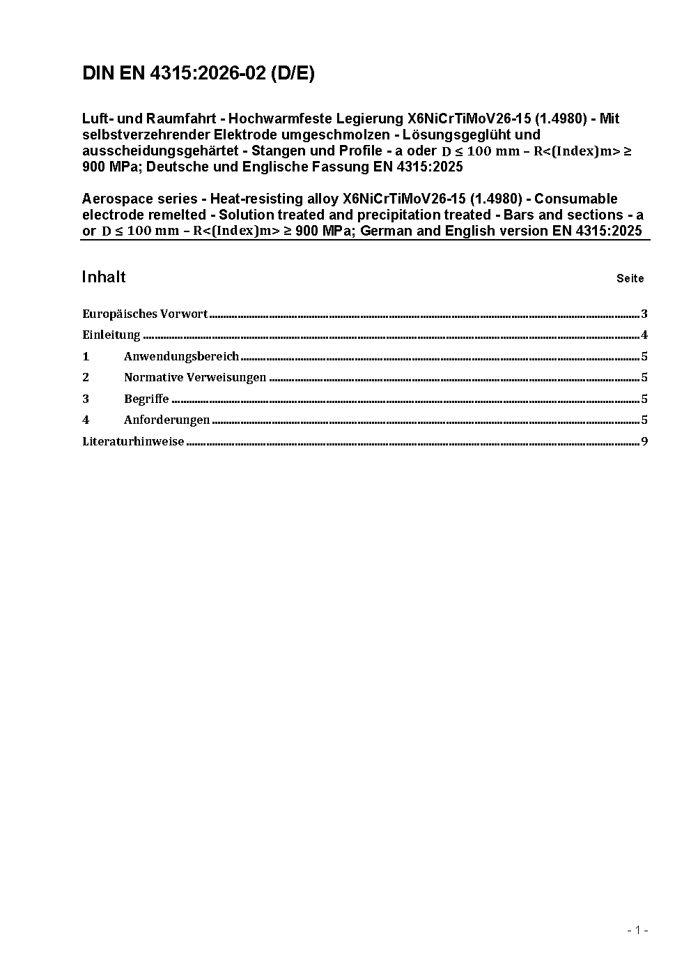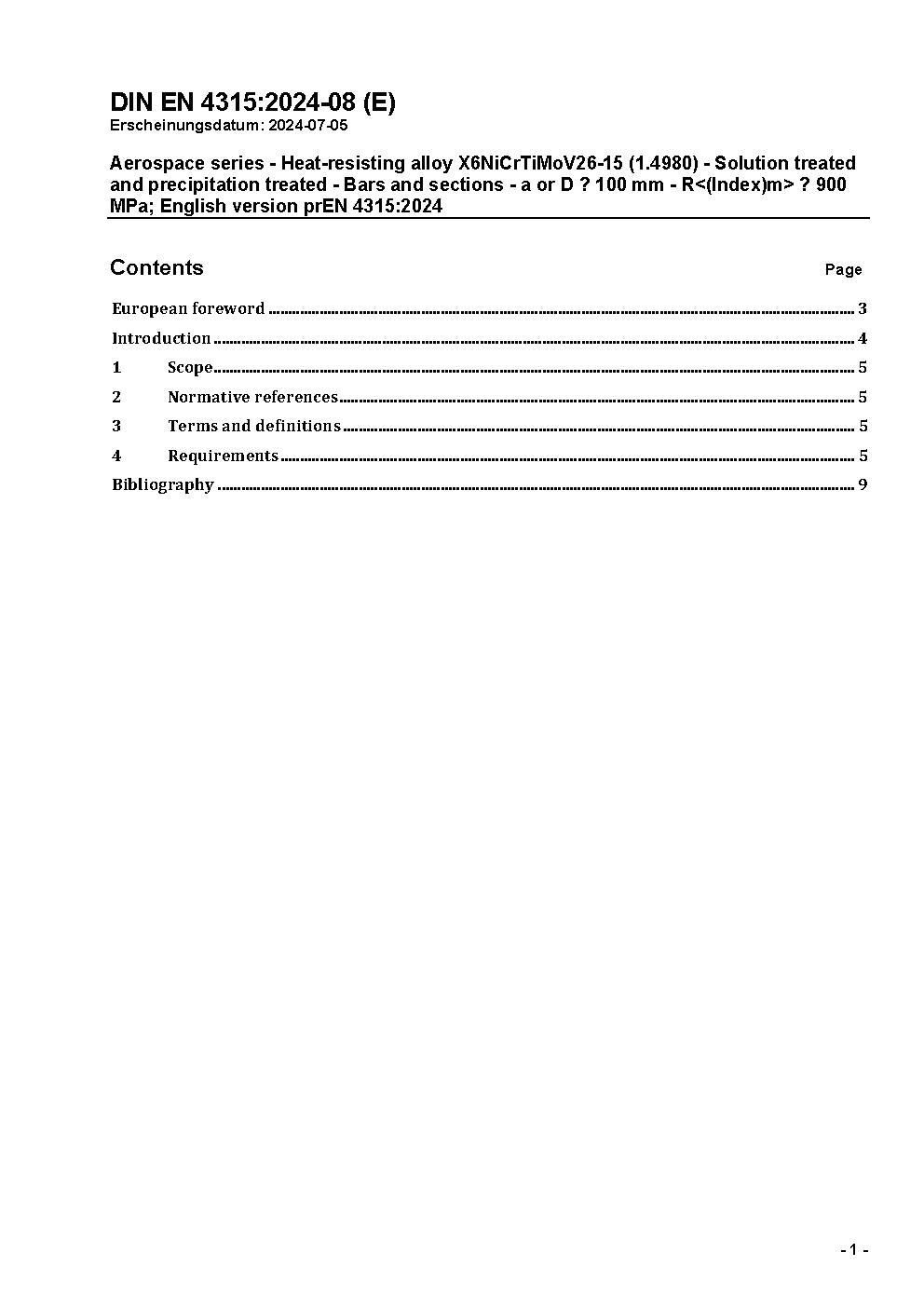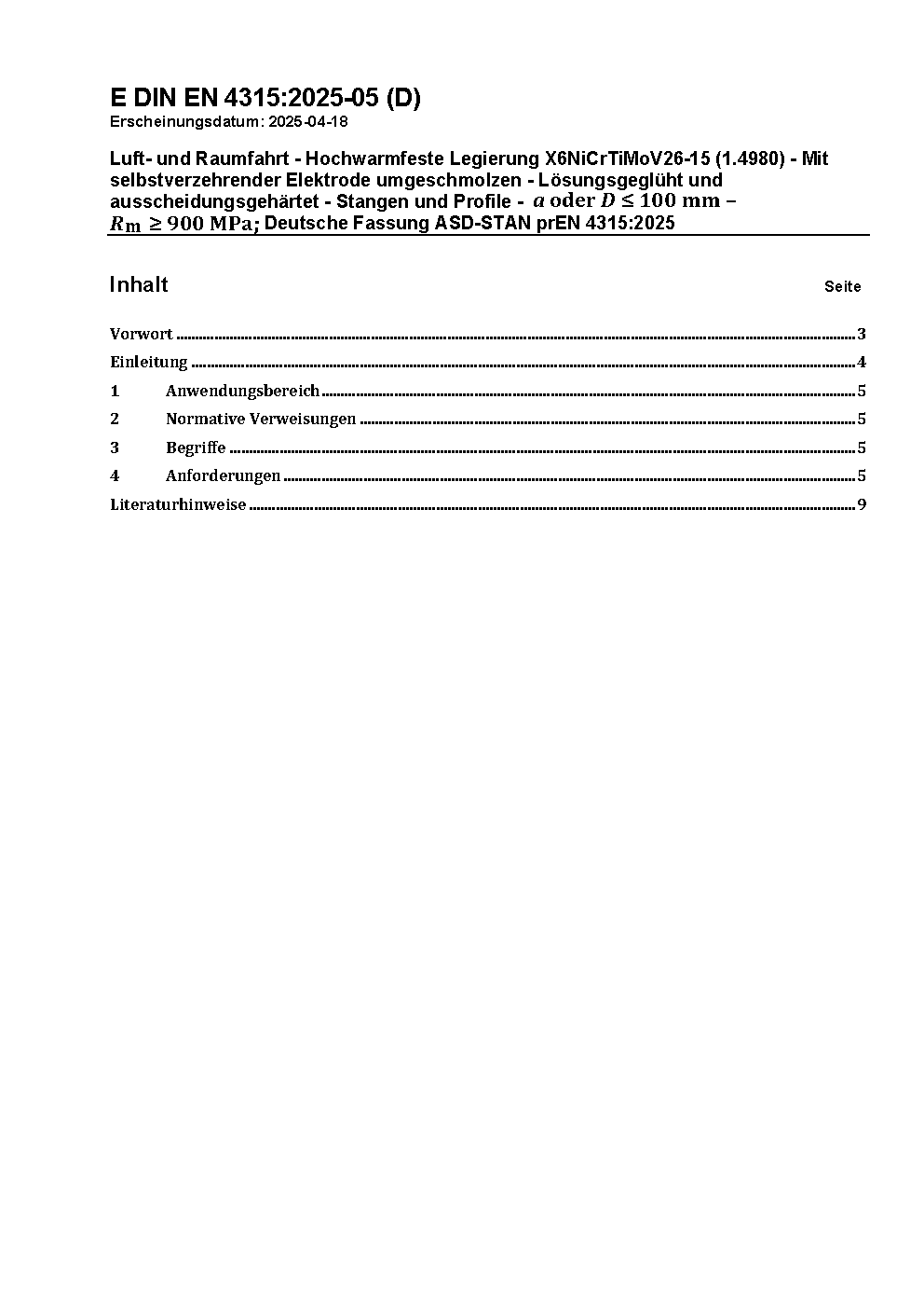 Luft- und Raumfahrt - Hochwarmfeste Legierung FE-PA2601 (X6NiCrTiMoV26-15) lösungsgeglüht und ausgehärtet - Stangen und Profile a oder D 100 mm, R<(Index)m> 900 MPa