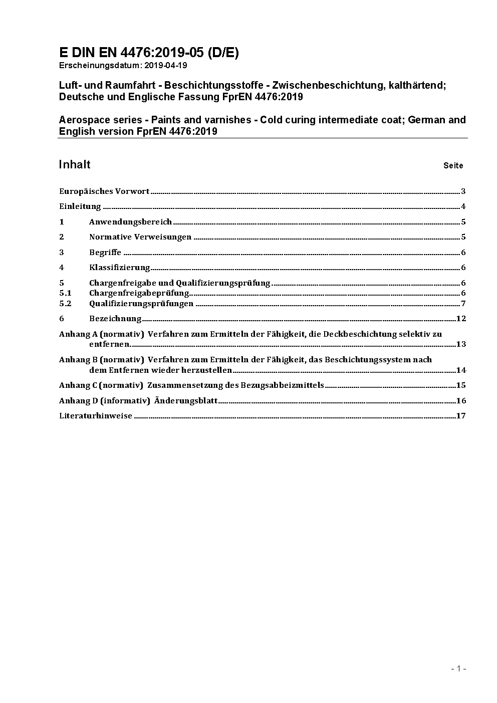 Luft- und Raumfahrt - Beschichtungsstoffe - Zwischenbeschichtung, kalthärtend; Deutsche und Englische Fassung EN 4476:2011