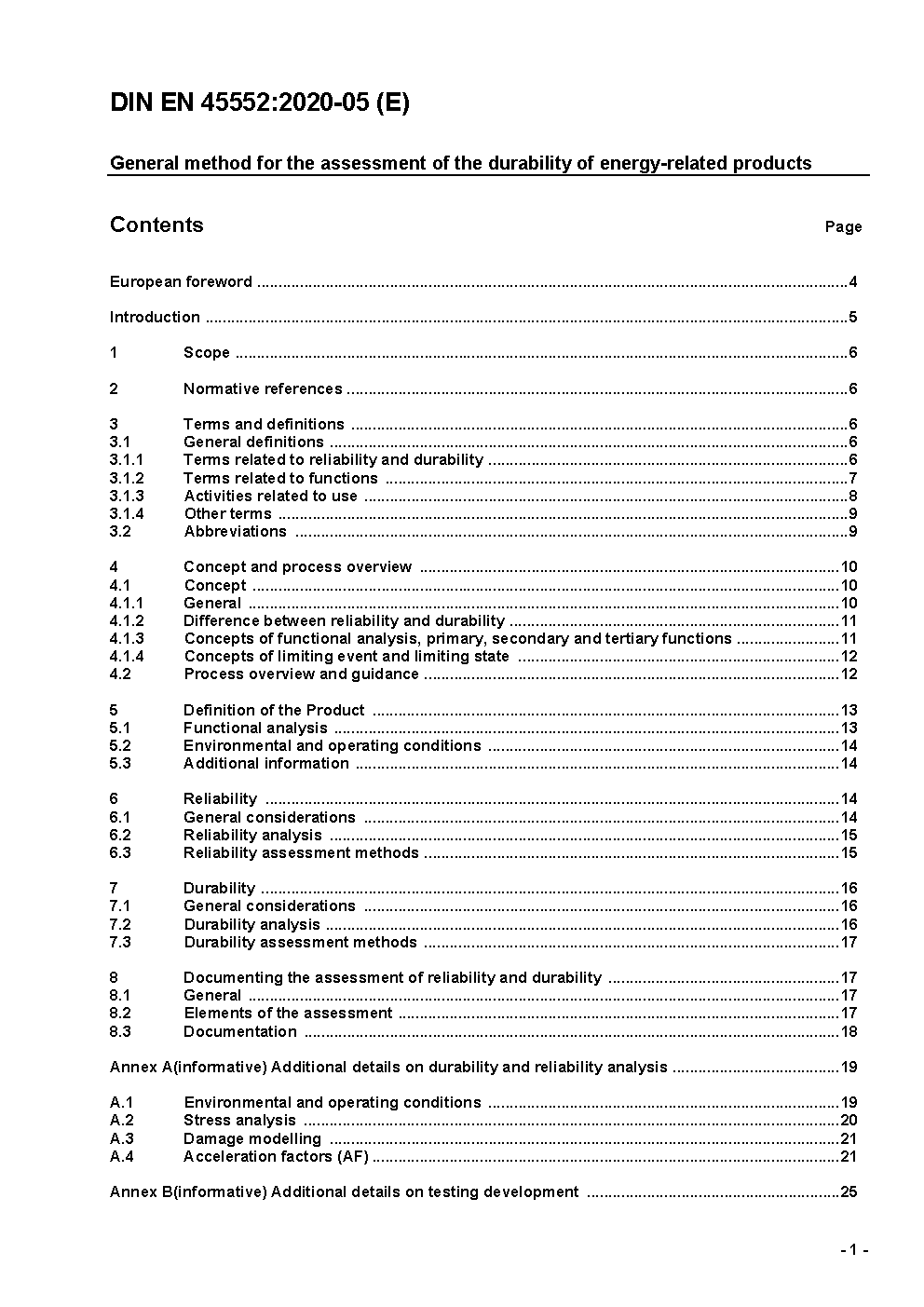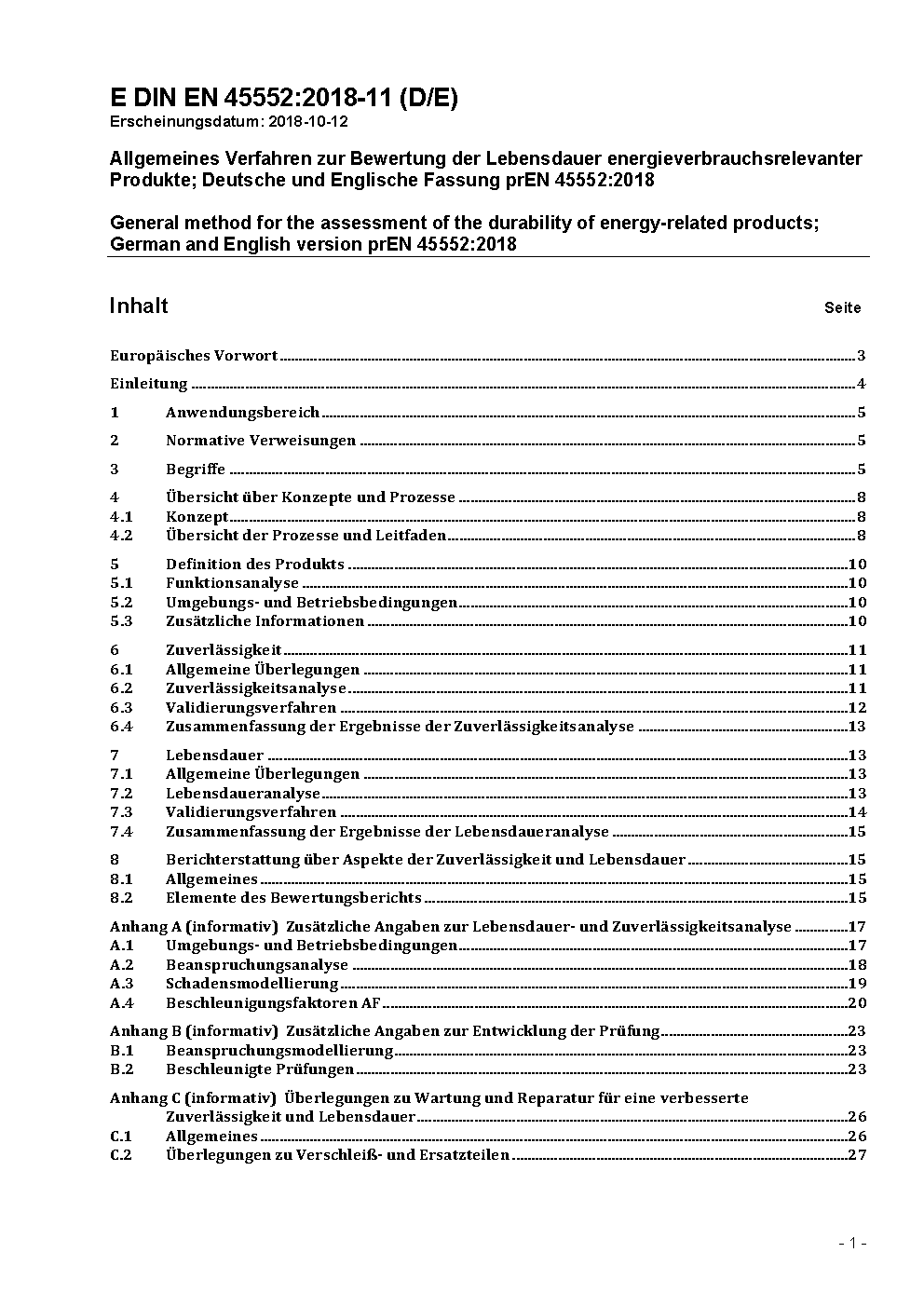 General method for the assessment of the durability of energy-related products; German version EN 45552:2020
