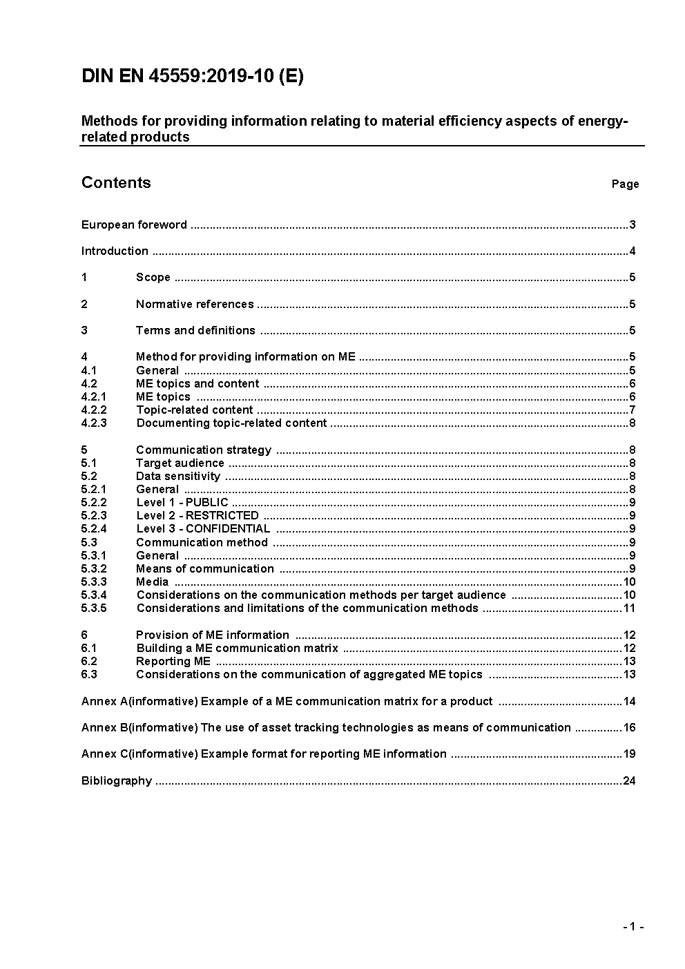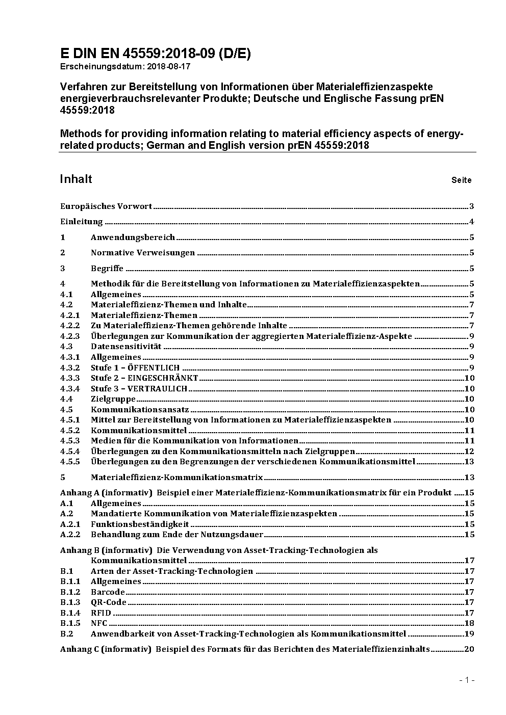 Methods for providing information relating to material efficiency aspects of energy-related products; German and English version prEN 45559:2018