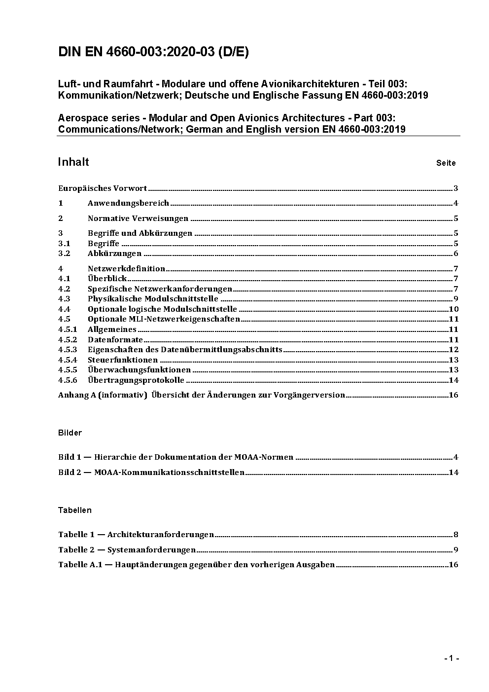 Aerospace series - Modular and Open Avionics Architectures - Part 003: Communications/Network; German and English version EN 4660-003:2011