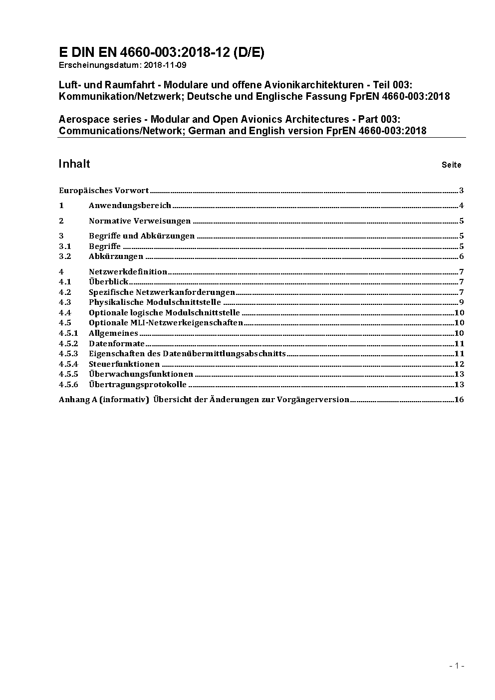 Luft- und Raumfahrt - Modulare und offene Avionikarchitekturen - Teil 003: Kommunikation/Netzwerk; Deutsche und Englische Fassung EN 4660-003:2011