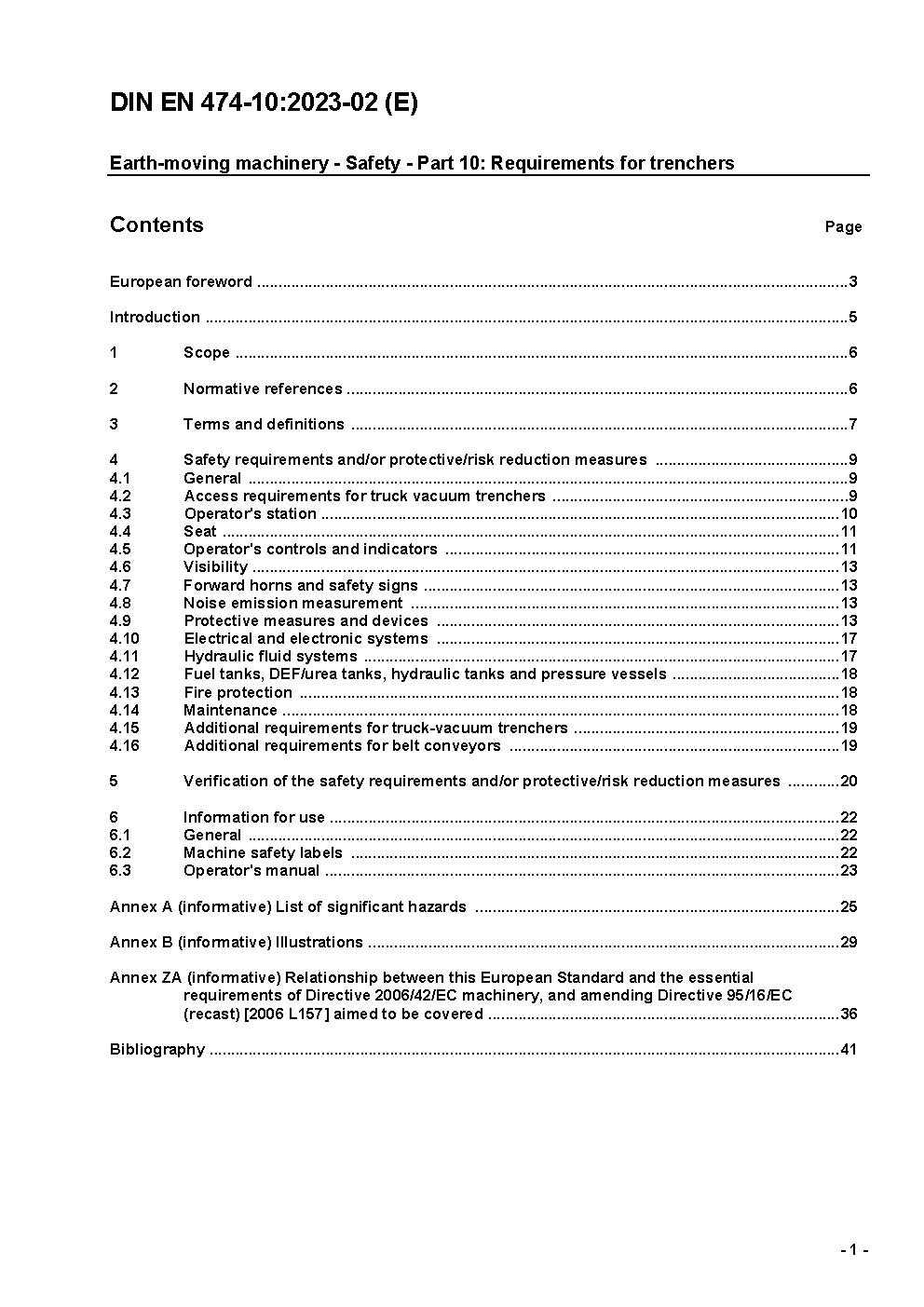 Earth-moving machinery - Safety - Part 10: Requirements for trenchers; German version EN 474-10:1998