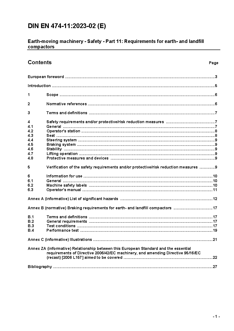 Earth-moving machinery - Safety - Part 11: Requirements for earth and landfill compactors; German version EN 474-11:1998