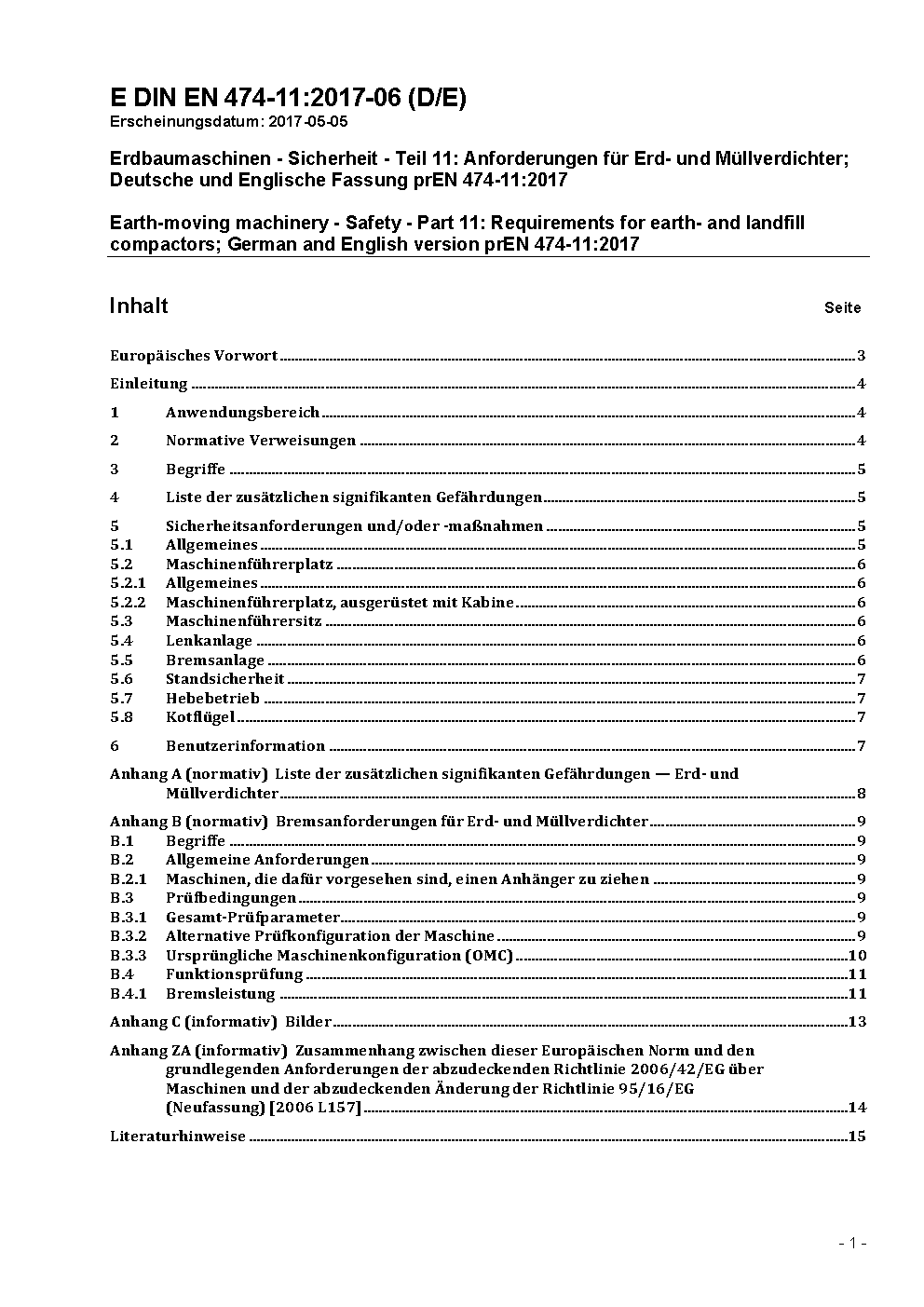 Erdbaumaschinen - Sicherheit - Teil 11: Anforderungen für Müllverdichter; Deutsche Fassung EN 474-11:1998