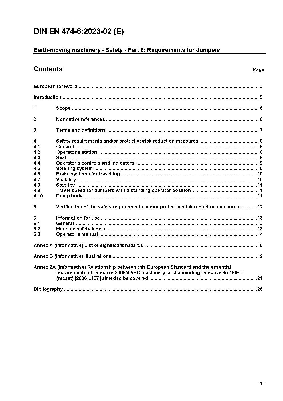 Earth-moving machinery - Safety - Part 6: Requirements for dumpers; German version EN 474-6:2006+A1:2009.