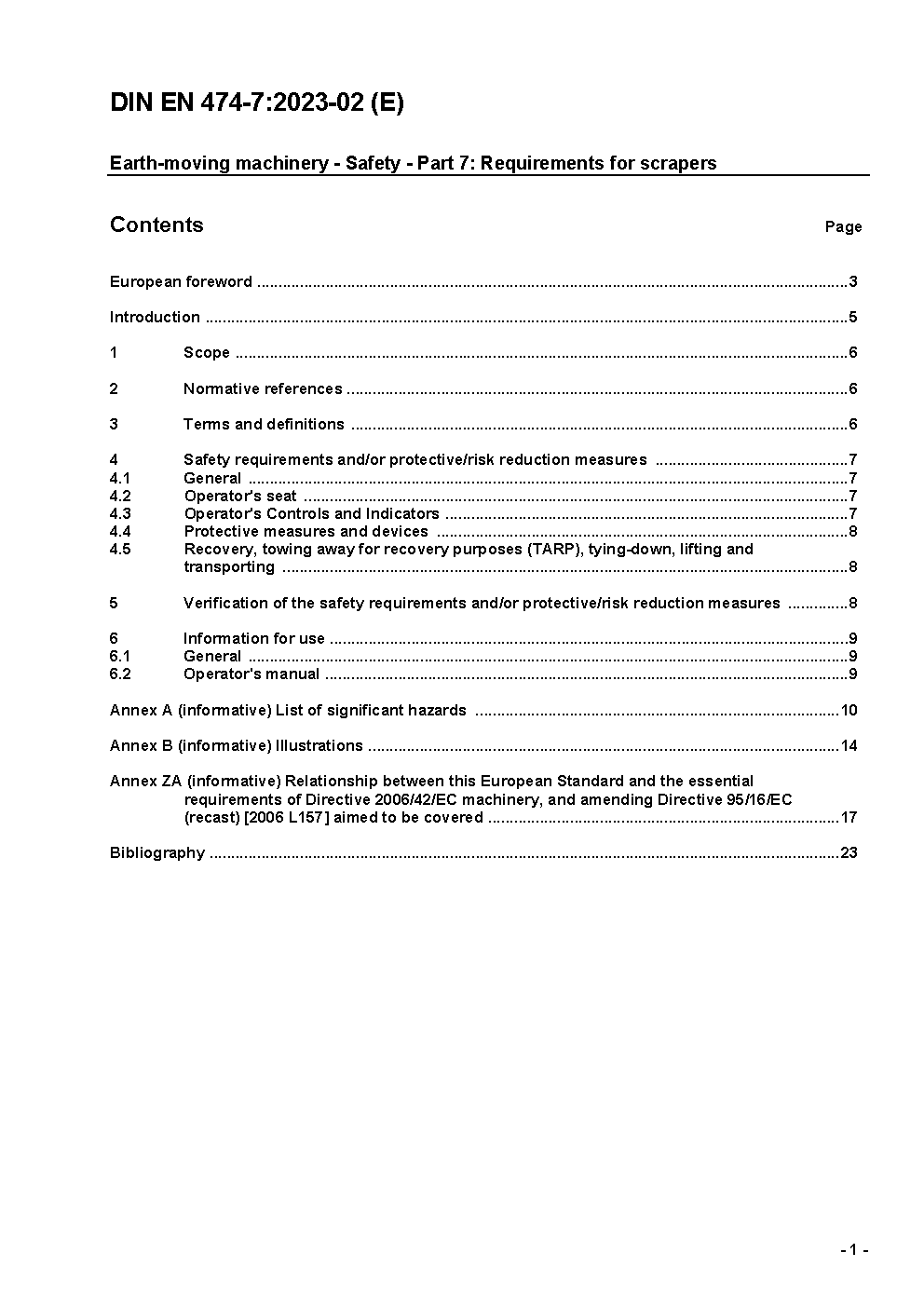 Erdbaumaschinen - Sicherheit - Teil 7: Anforderungen für Scraper; Deutsche und Englische Fassung prEN 474-7:2017