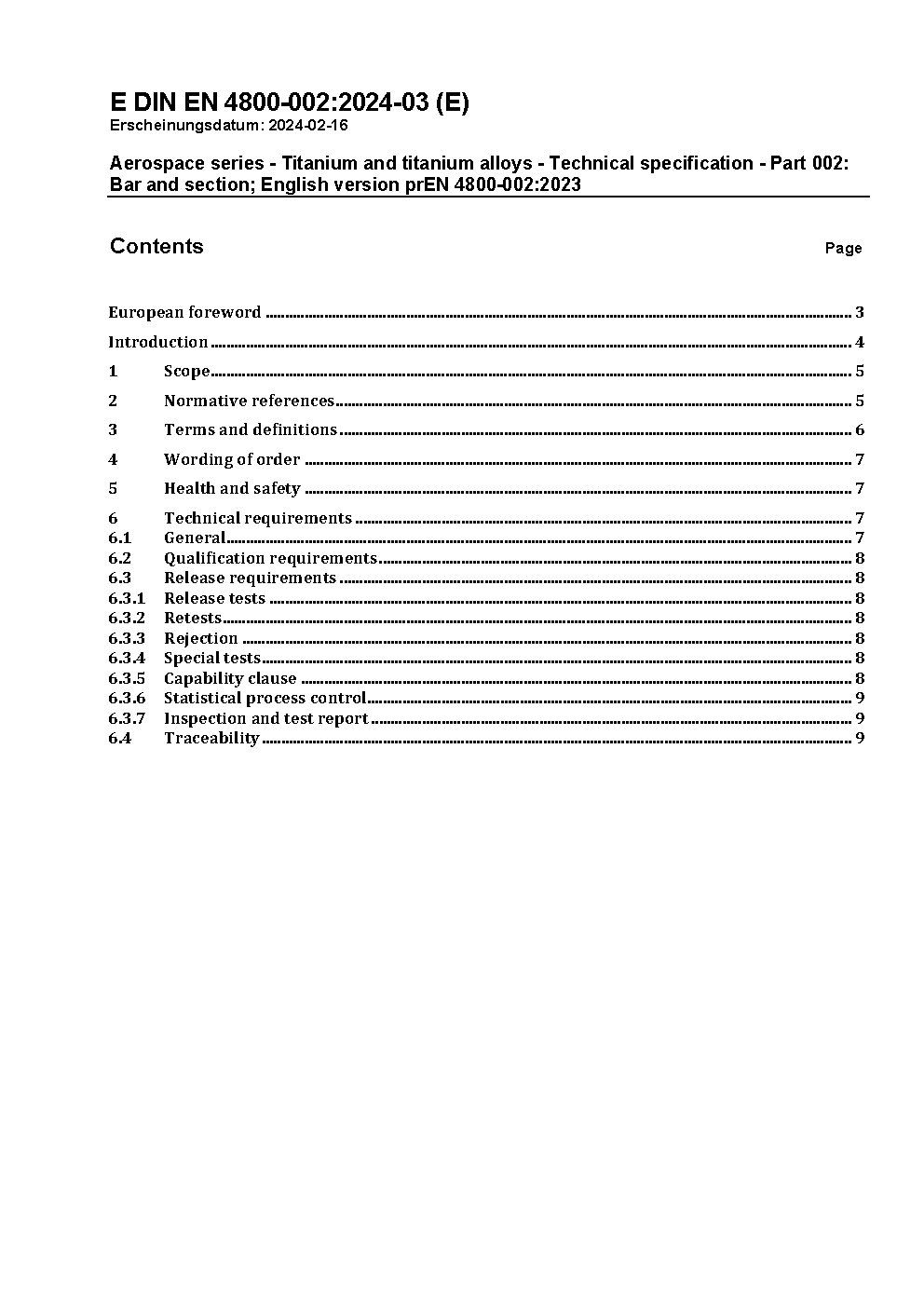 Aerospace series - Titanium and titanium alloys - Technical specification - Part 002: Bar and section; German and English version EN 4800-002:2010