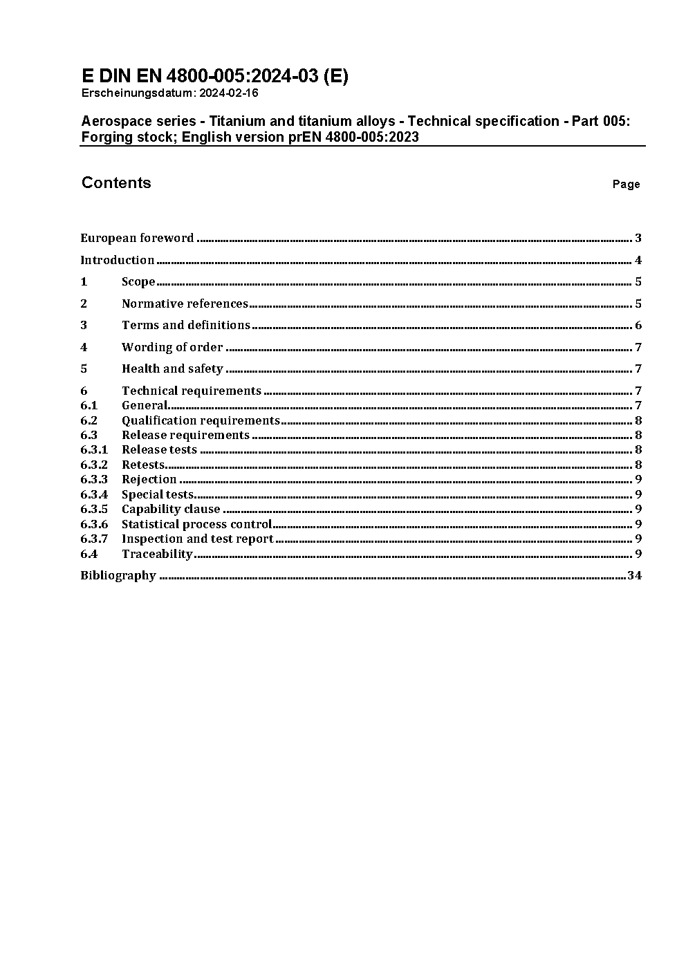 Aerospace series - Titanium and titanium alloys - Technical specification - Part 005: Forging stock; German and English version EN 4800-005:2010