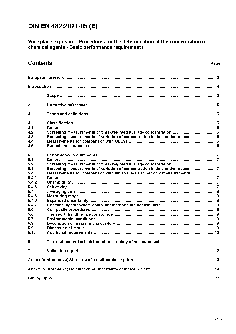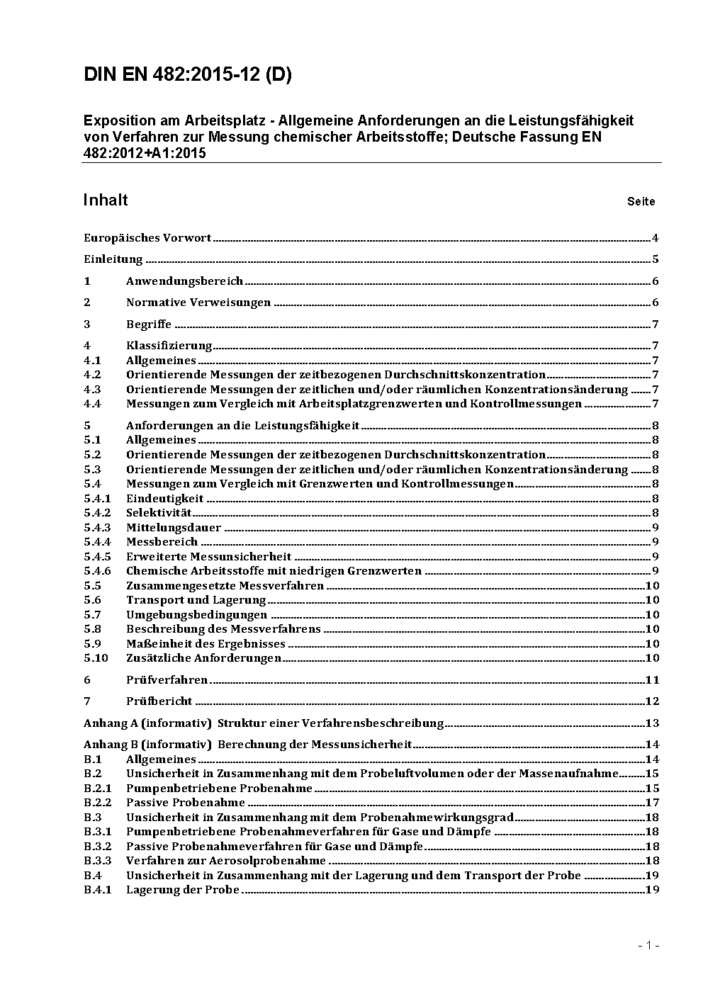 Exposition am Arbeitsplatz - Allgemeine Anforderungen an die Leistungsfähigkeit von Verfahren zur Messung chemischer Arbeitsstoffe; Deutsche Fassung EN 482:2012